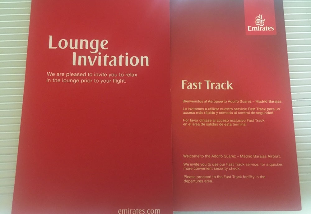 With the boarding pass, you're given lounge access, though I was mildly disappointed that the lounge in the Madrid airport, the Neptuno Lounge, is the very same one I can access with Priority Pass, because Emirates doesn't have its own first class lounge there. But beggars can't be choosers, so I enjoyed my lounge access. I also got a fast pass through security in Madrid as well as a fast track to head through customs in Dubai.