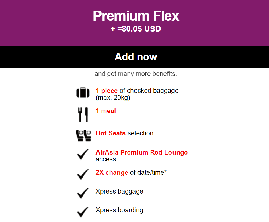 The AirAsia website is easy to navigate and much easier than booking over the phone. I wanted to experience this flight as economically as possible so I booked the AirAsia "low fare" which is the most basic economy fare. Similar to most low-cost carriers, I was presented with a range of upgradeable options during the booking process, such as Premium Flex, but I ignored them.