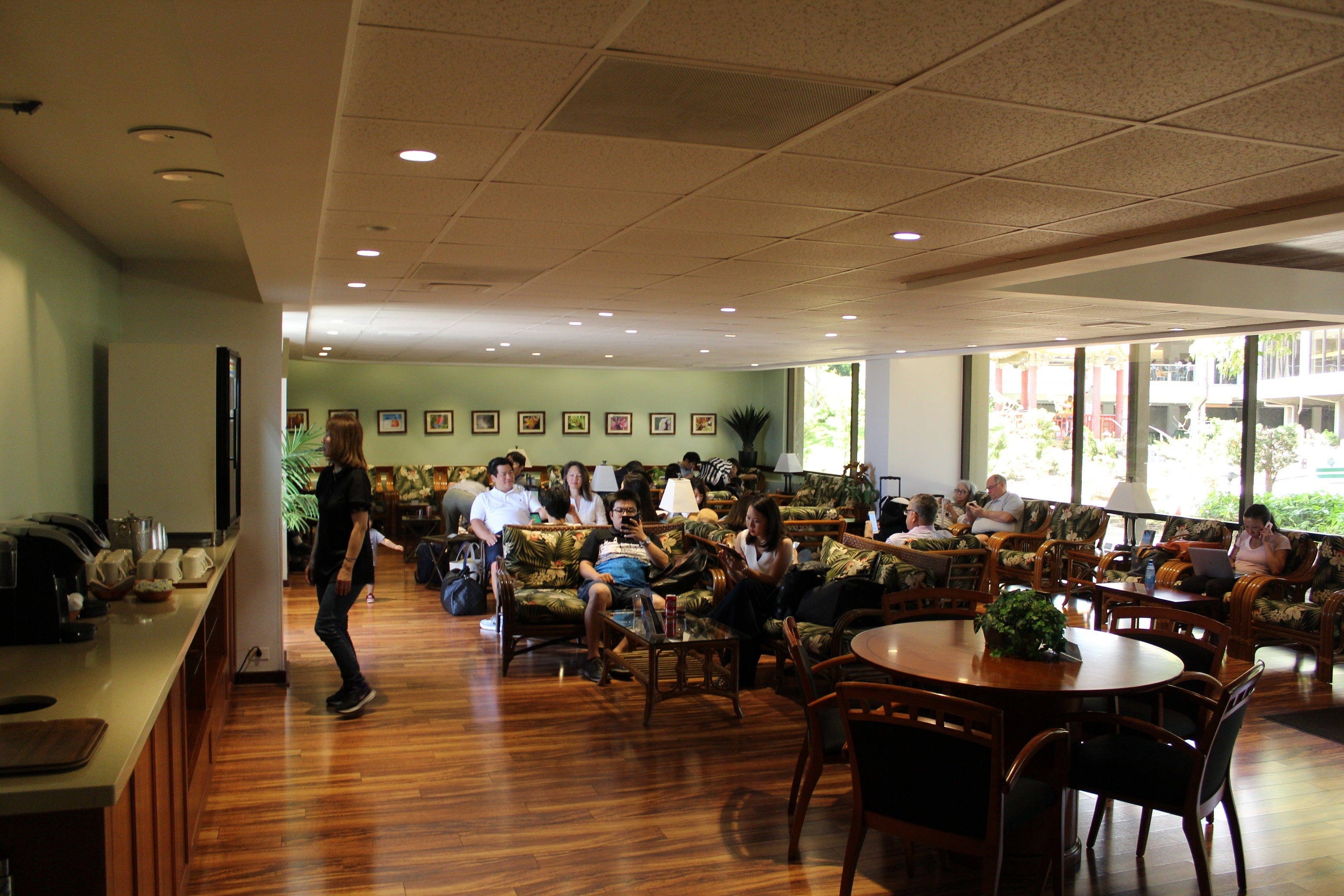 I do not recommend this lounge at all. Even though it's very close to the gate, there's not much of a reason to visit. The Plumeria lounge is much farther but it's much nicer. If you have the luxury of time, I'd recommend taking the 10-minute walk to give the lounge a look.