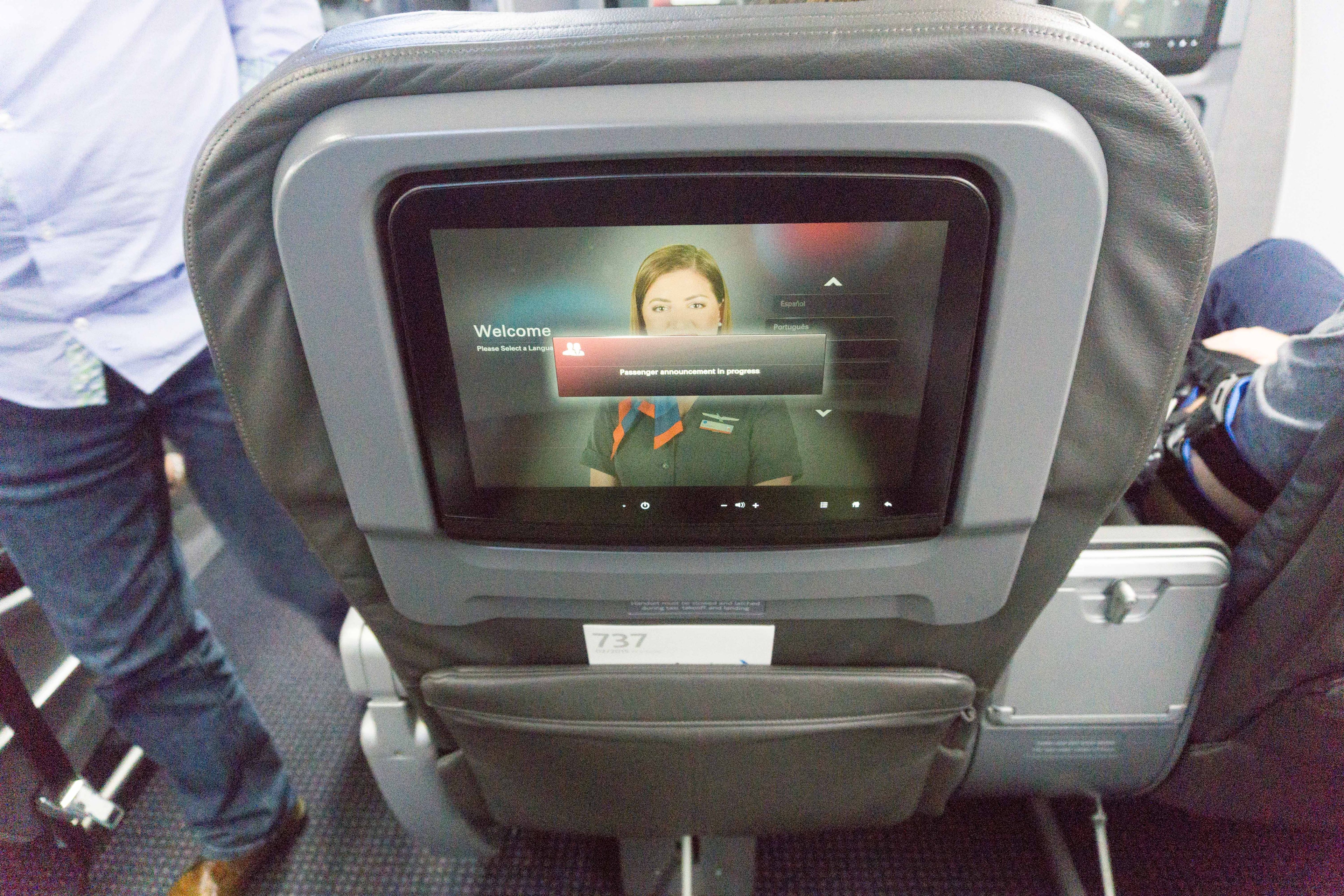 The flight attendants welcomed us, and I was immediately pleased to see this was one of AA's 737s that was equipped with in-flight entertainment. I couldn't get a good photo of the whole cabin because it was already occupied by several passengers, but TPG's Benji Stawski reviewed an AA 737 with the same configuration earlier this year, pictured below: