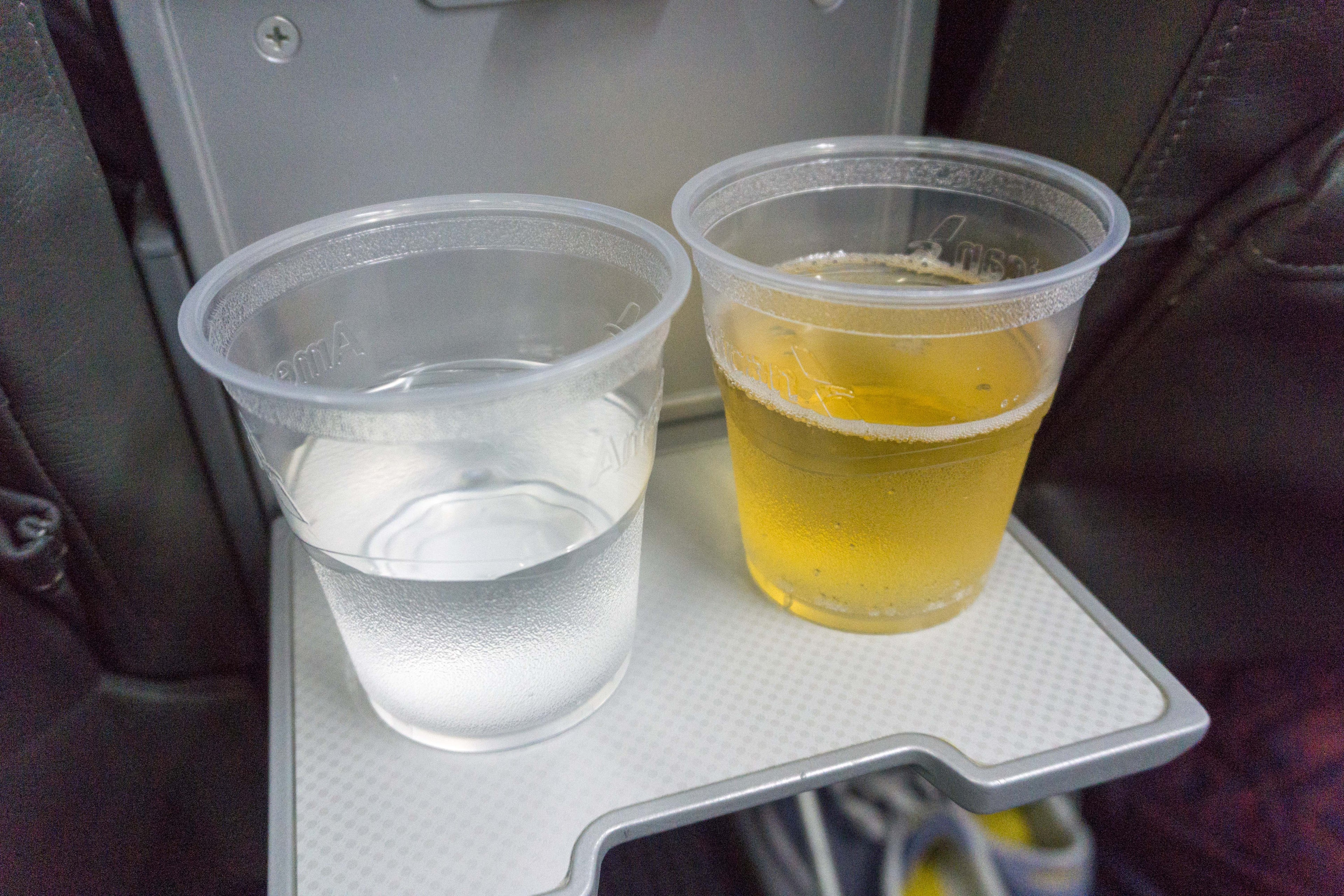 Considering this was quite a short red-eye, service on the flight was limited. After welcoming us aboard, the FA working the forward cabin came around to take our beverage orders. I requested sparkling wine and water and was served the same cava that was available for purchase in economy. The Delamotte in the Flagship Lounge duped me into thinking all sparkling wine is delicious, but the best thing I could say about this cava was that it was cold.
