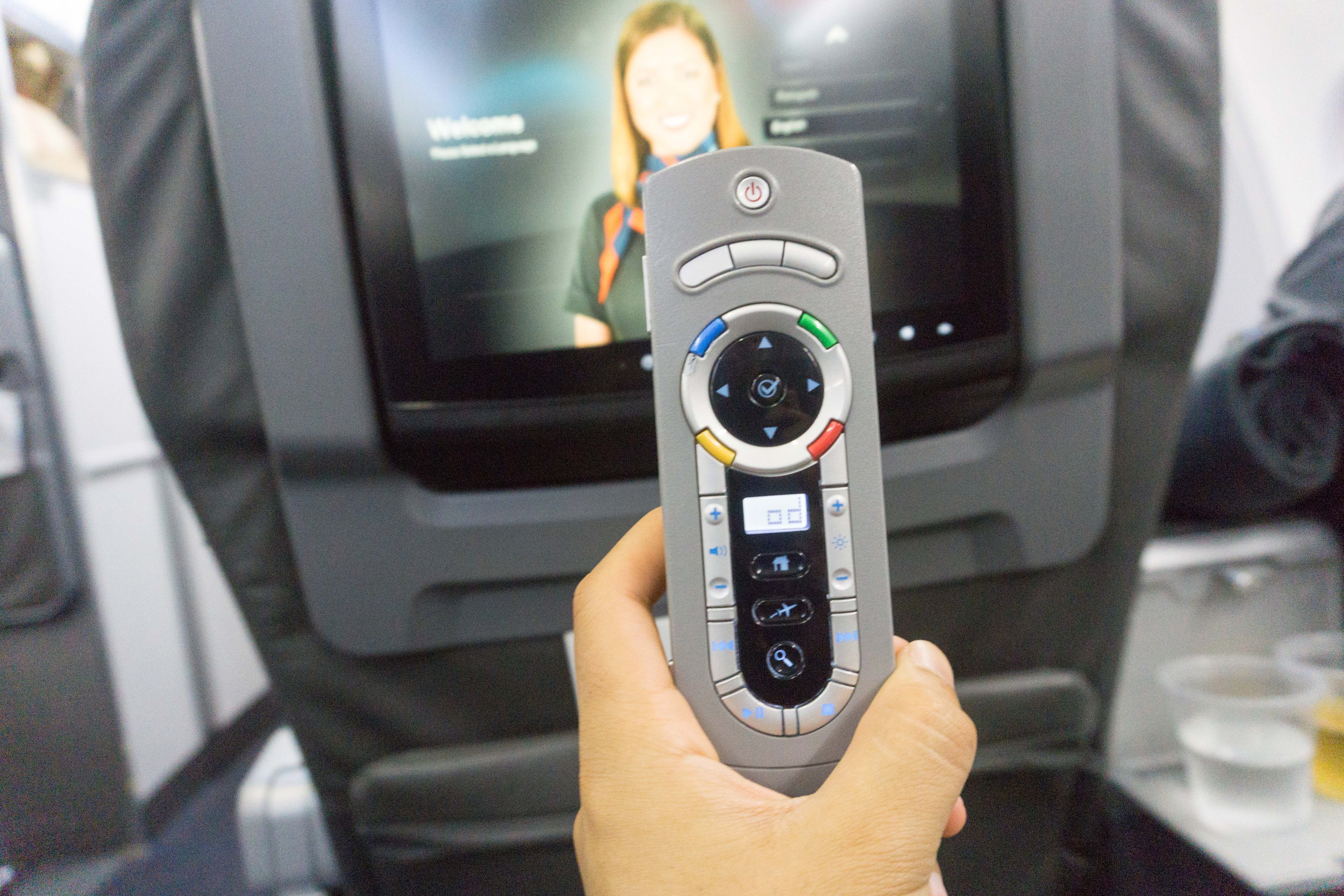 I was happy to find seatback entertainment screens, and mine was touch-responsive and had a remote in the armrest. I found the actual user interface of the system somewhat hard to navigate — you had to have child-sized fingers to manage it on the touchscreen — but there was plenty of content. It even featured the food and drinks available on the flight, though you couldn't order directly from the screen.