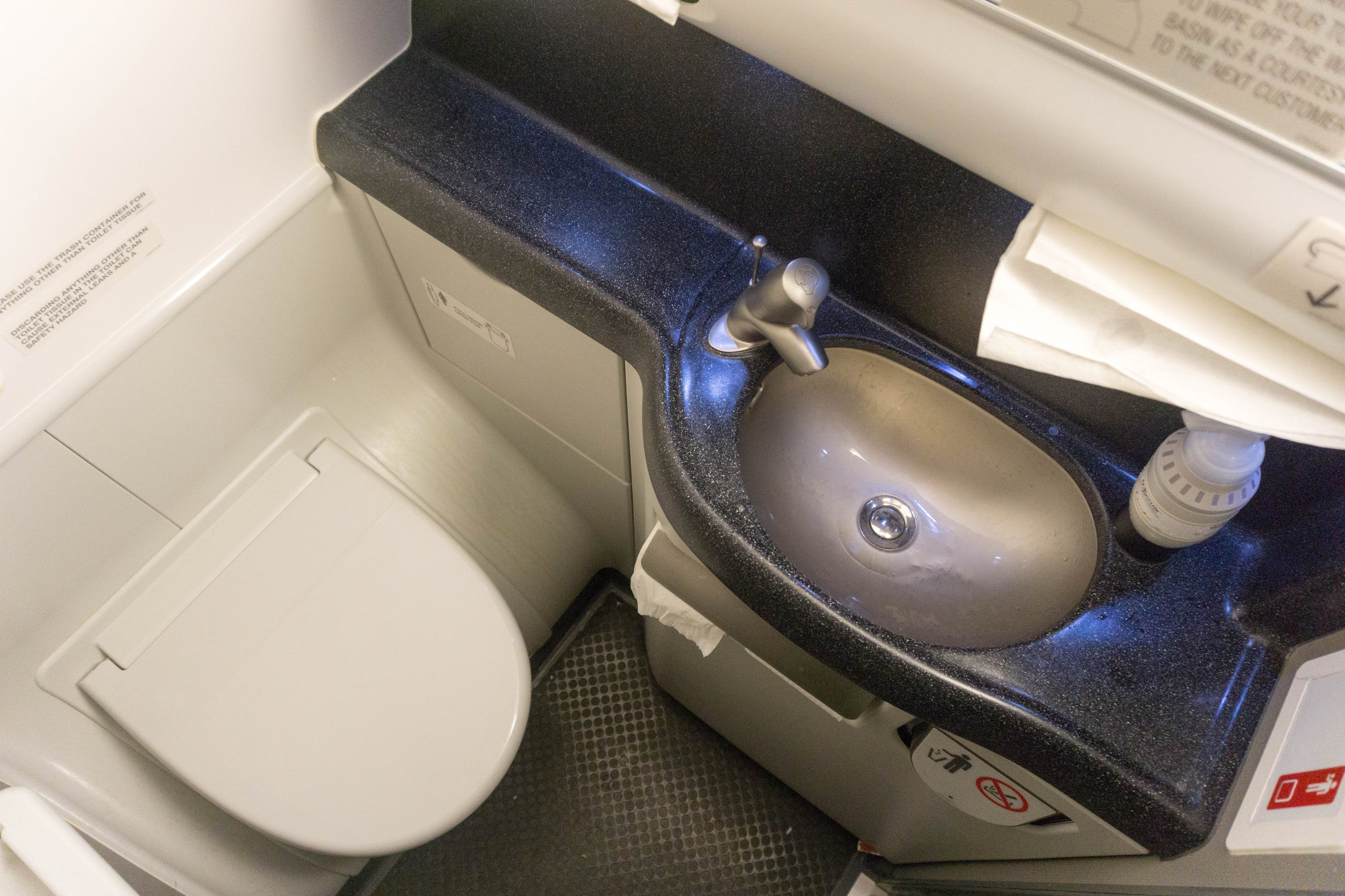 I only visited the forward bathroom once throughout the flight, and it was pretty clean, though it didn't have any additional amenities.