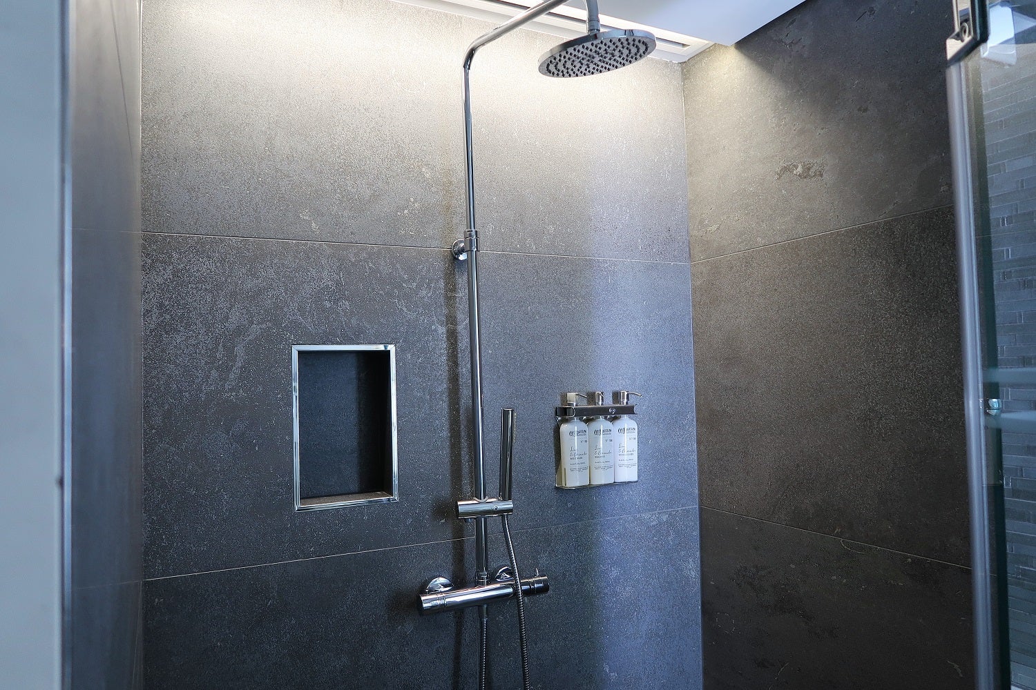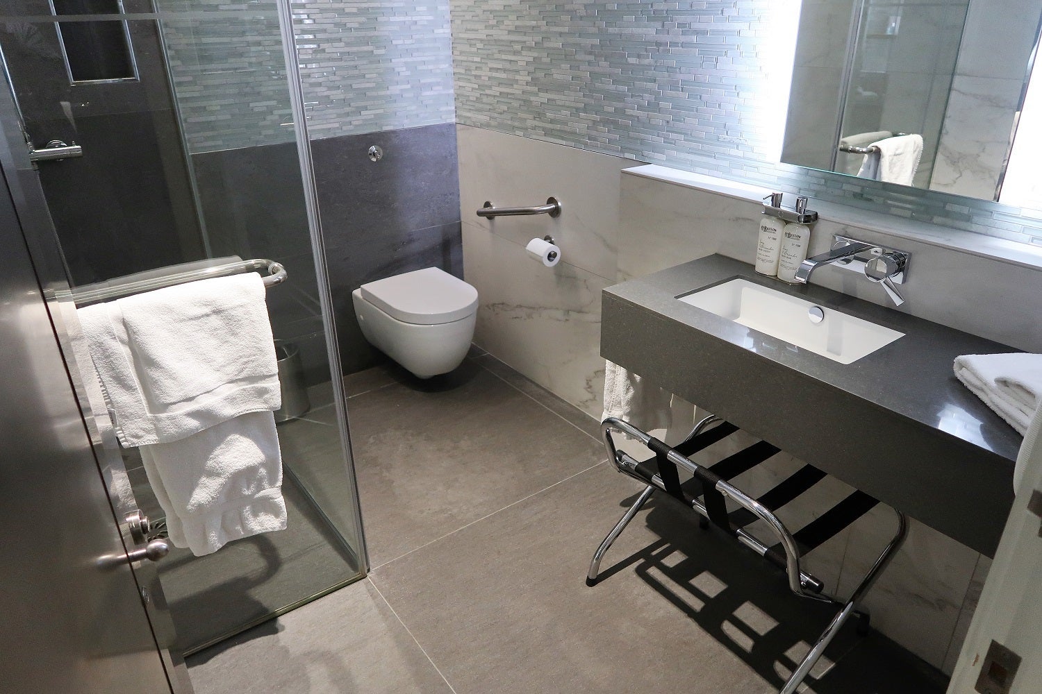 The overhead shower heads are tall enough for bigger travelers — even all 6 feet, 7 inches of The Points Guy himself.