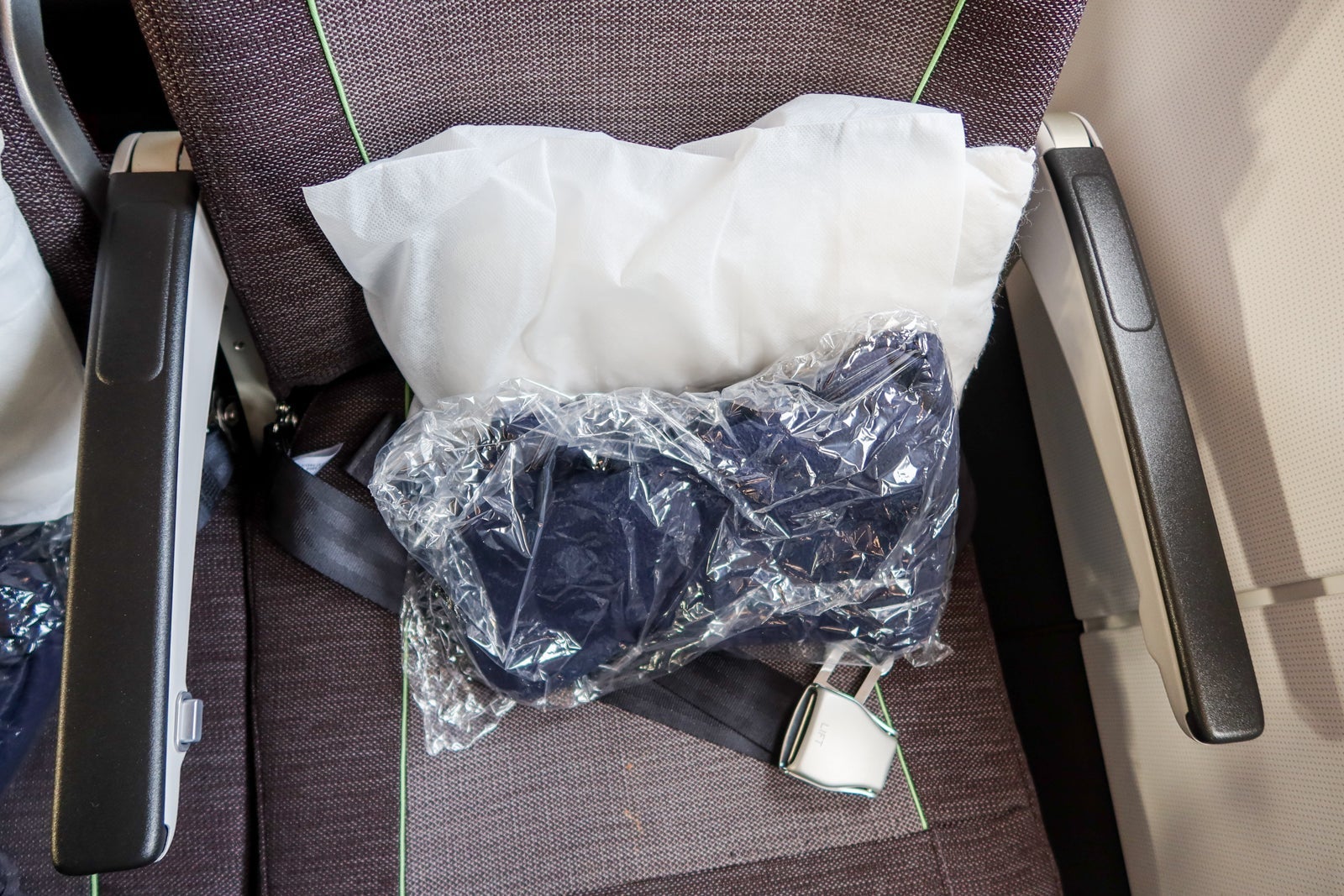 Aer Lingus didn't offer an amenity kit in economy, but a blue blanket, pillow and earphones were waiting for me at my seat when I boarded.