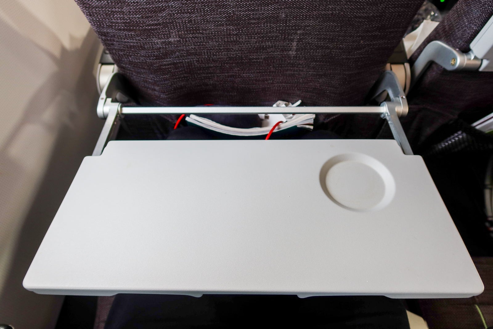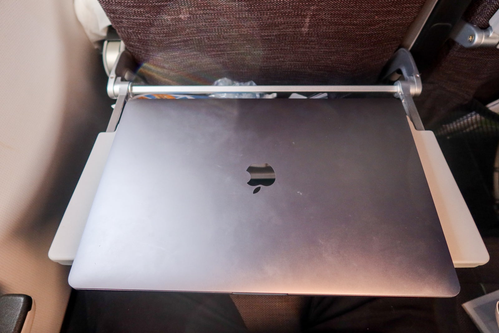The tray table was standard size, and sadly no match for my 15-inch MacBook, making it fairly difficult to get much work done during the flight.