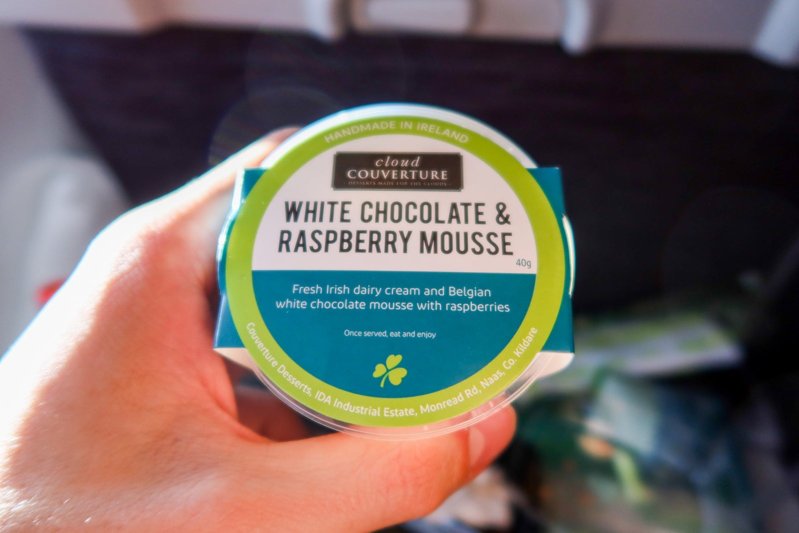 The side dishes were hit-and-miss. While the container of pasta and salad had almost no taste, the raspberry chocolate mousse dessert was light, creamy and absolutely delicious. With the meal service cleared away, the crew then proceeded to bring coffee or tea.