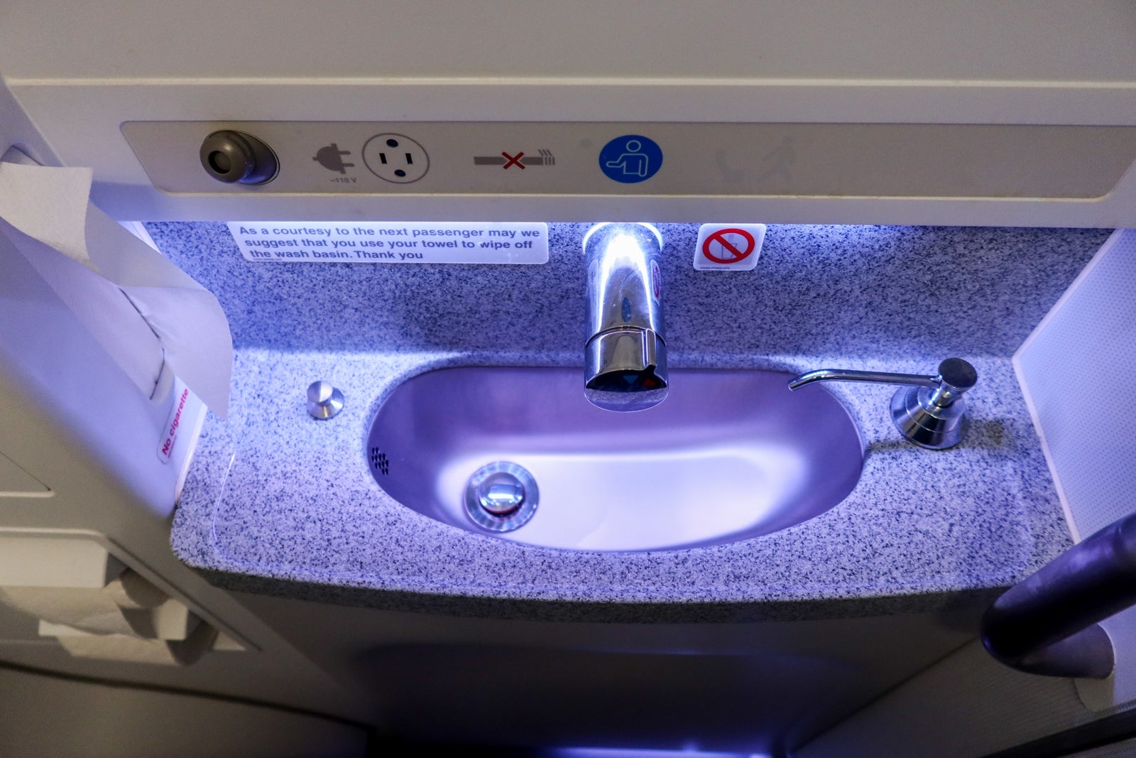 The economy cabin had access to three toilets, all located at the rear end of the aircraft and kept clean throughout the flight.