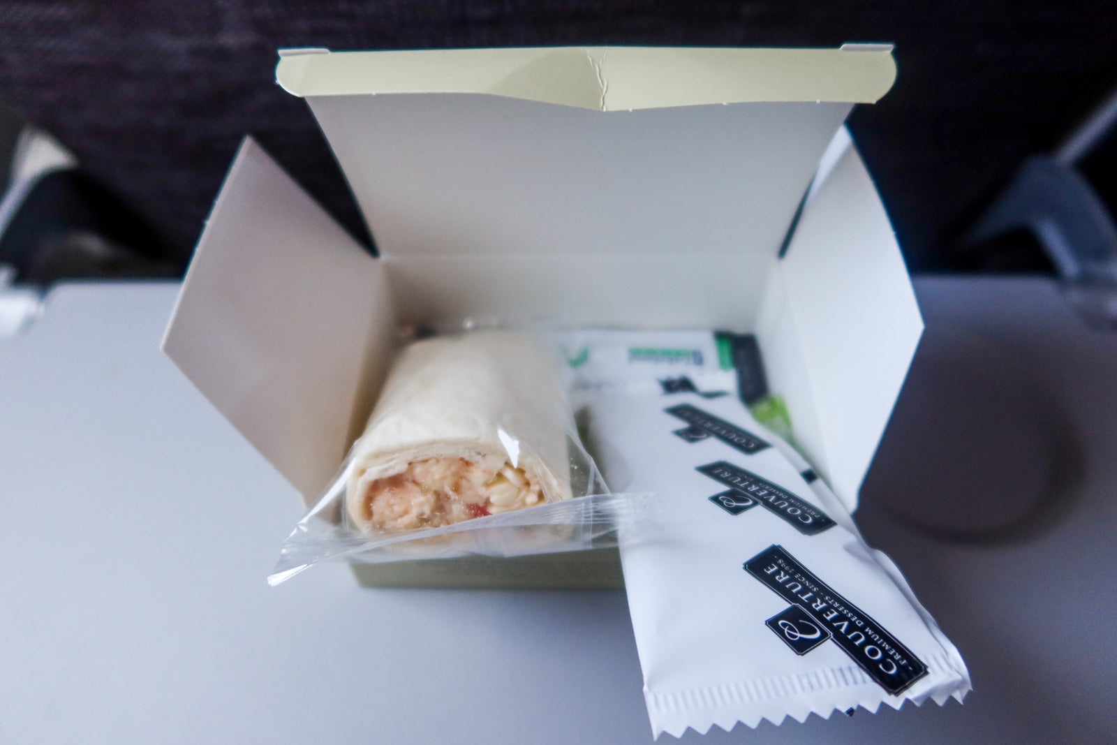 With around an hour to go until landing I was handed a small chicken wrap and chocolate brownie. It certainly wasn't enough to constitute an entire second meal — which is why we gave a one-and-a-half meal count rather than two in this section's summary — but it was a nice touch nonetheless on this relatively short day flight.