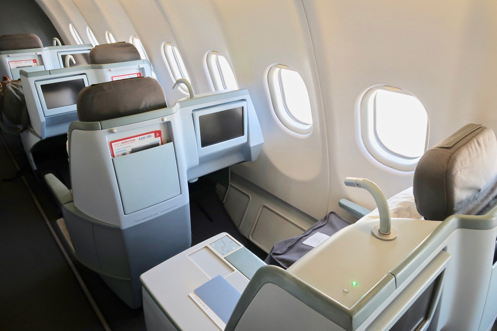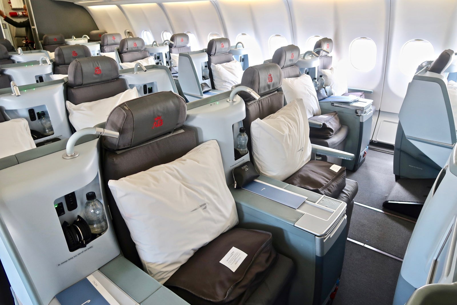 Seat rows alternated between a 2-2-1 and a 1-2-1 layout with the single throne seats (those with console armrests on both sides) in even rows on the port side and two seats in even rows closer to the window.