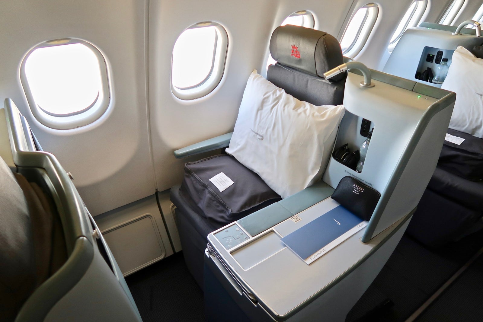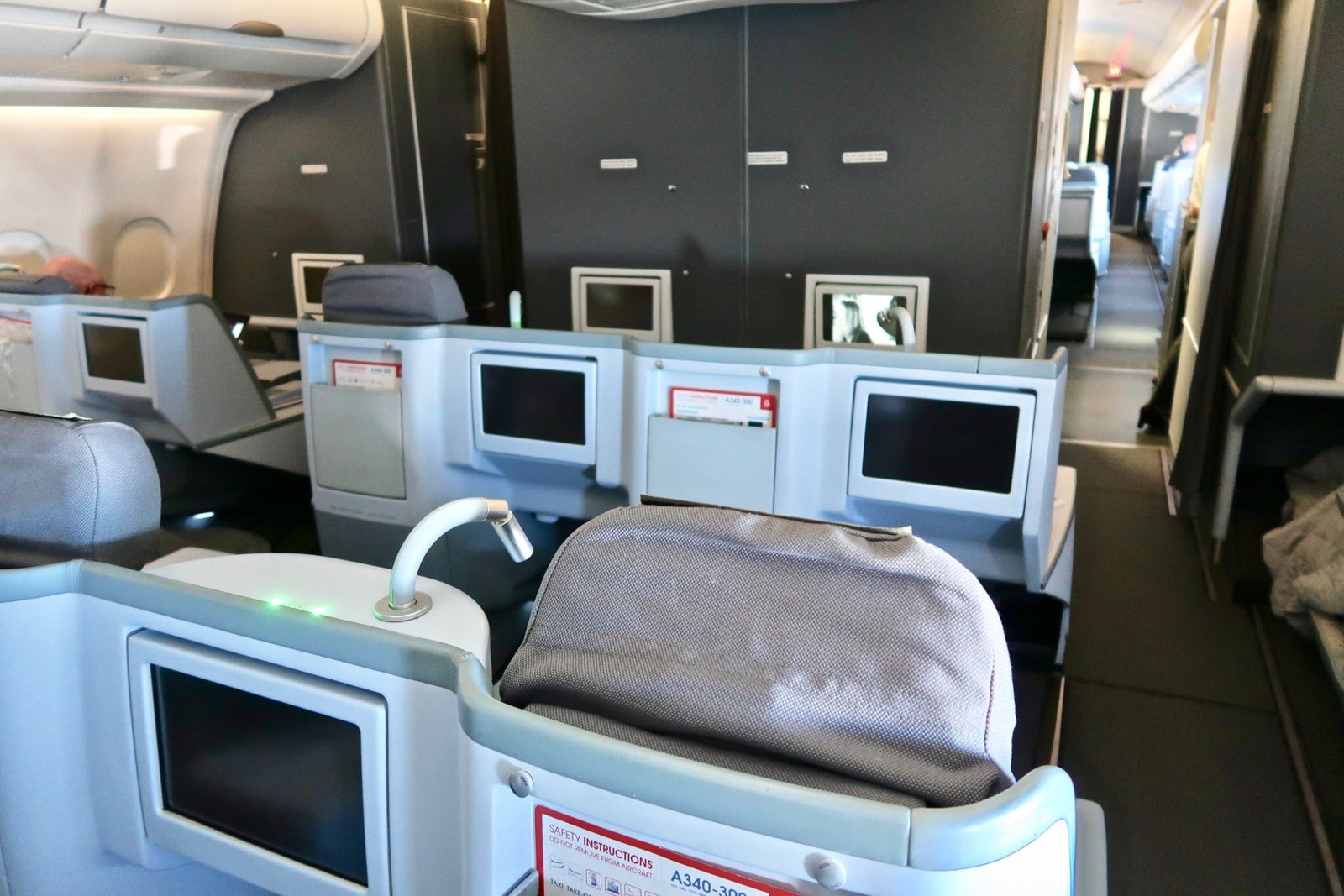 The business-class section of this 11-year-old A340-300 was split between two cabins, with seven rows at the front of the aircraft and three behind the galley and lavatories.