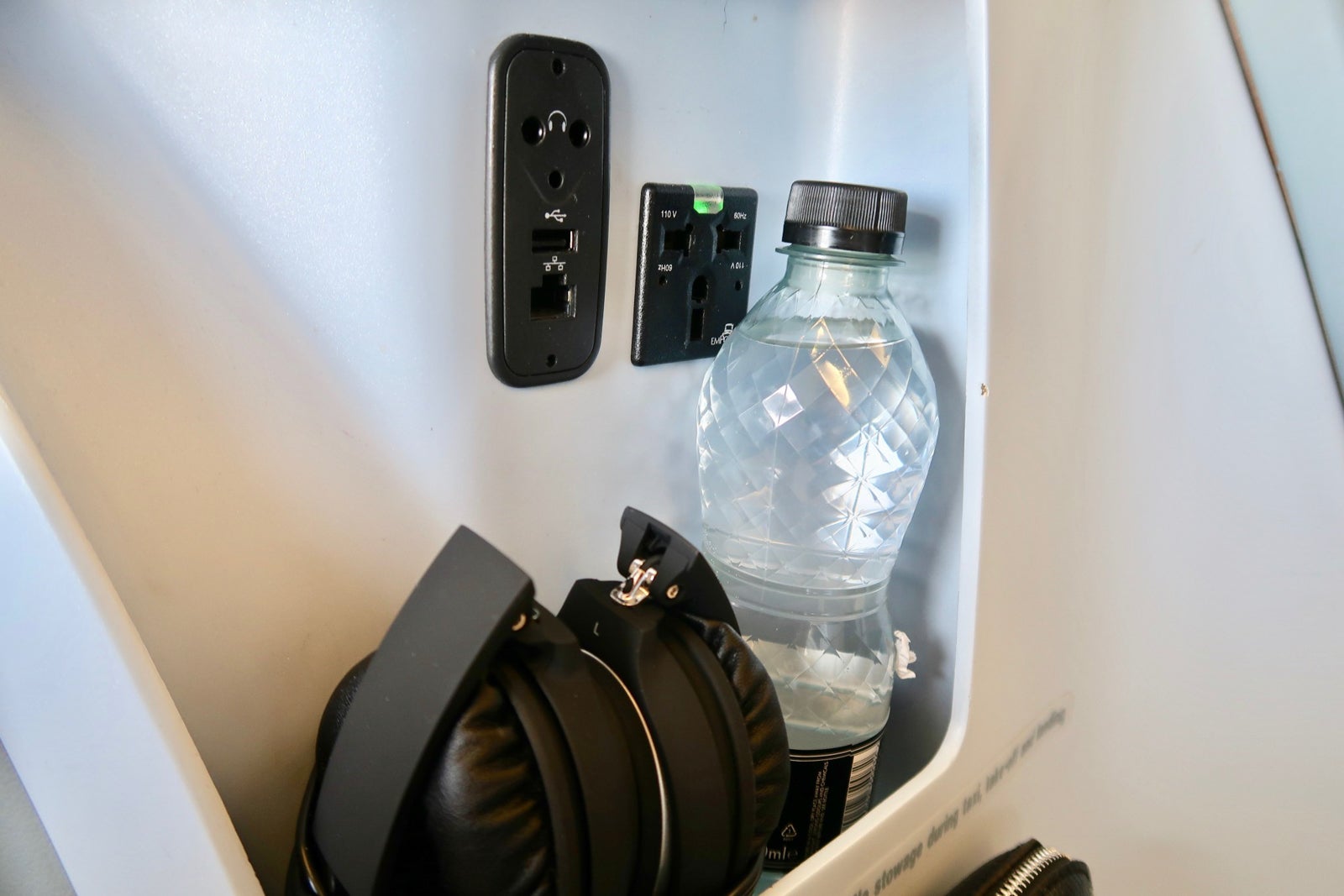 There was a USB and a conventional charging point to the side of the seat, as well as an adjustable reading lamp (in addition to lights for each seat, which were controlled via the old-school remote control).