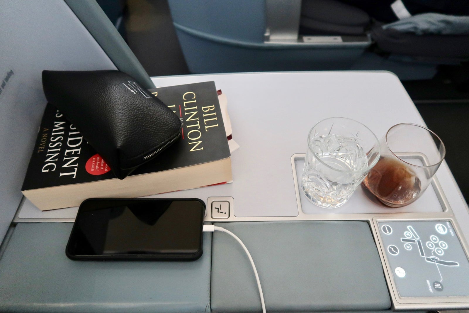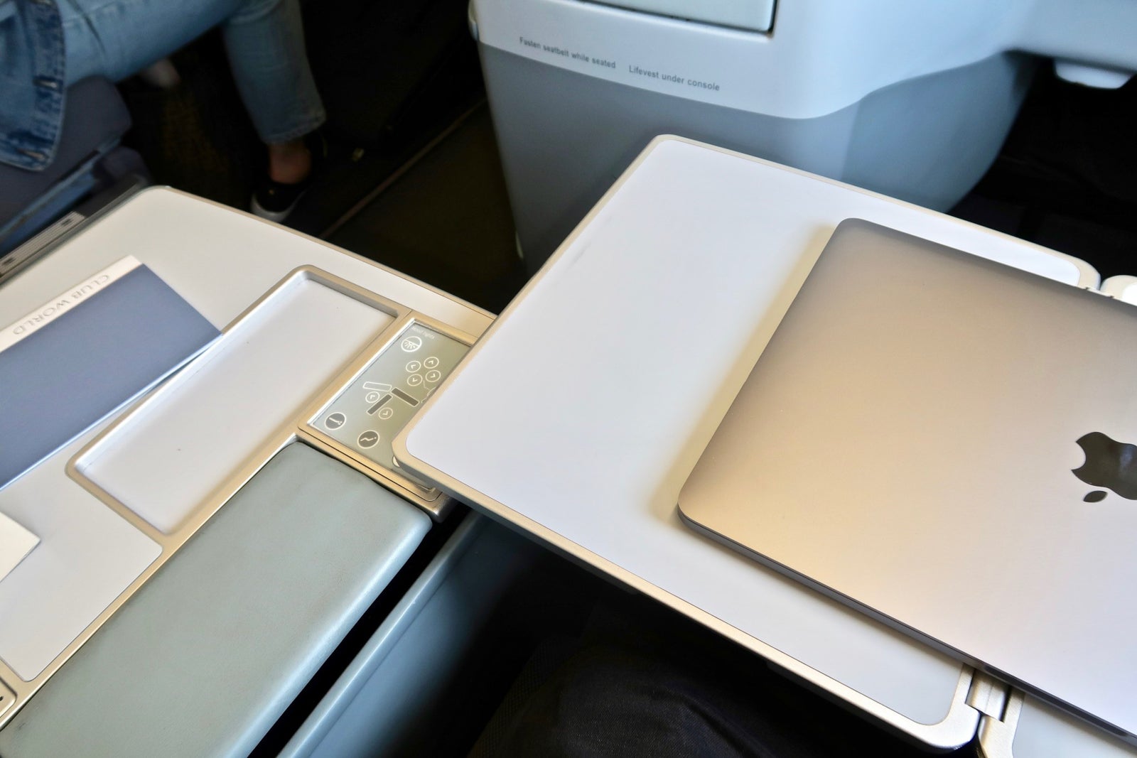 Seat controls were straightforward, though getting the table out was clunky, and storing it was even worse. The tray table itself was wobbly, though of a decent size. It was the same issue as with AA's 767: Returning the table involved aligning a few arrows perfectly, pushing a bit, pulling a bit, pressing down and sliding it into the side.