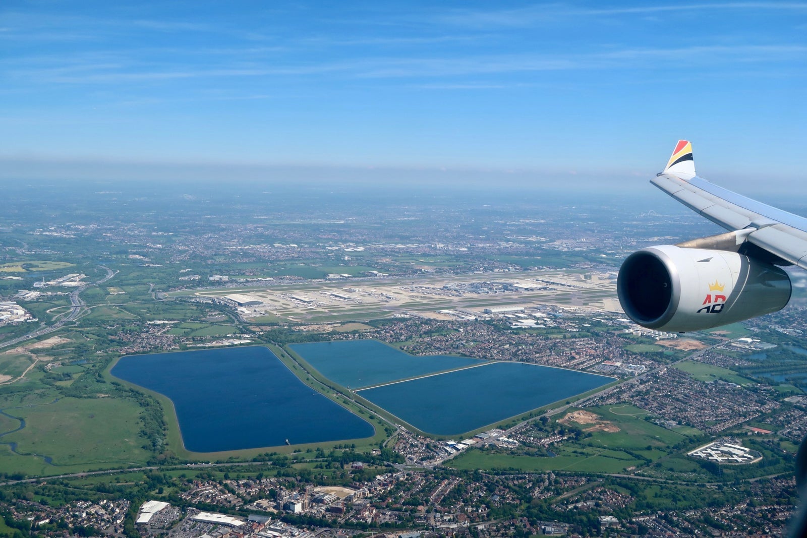 Taxiing out to the runway, we passed two of British Airways' retro jets. We were airborne at 11:25am and had a stunning climb past Heathrow, having taken off toward the east before performing a 180-degree turn.