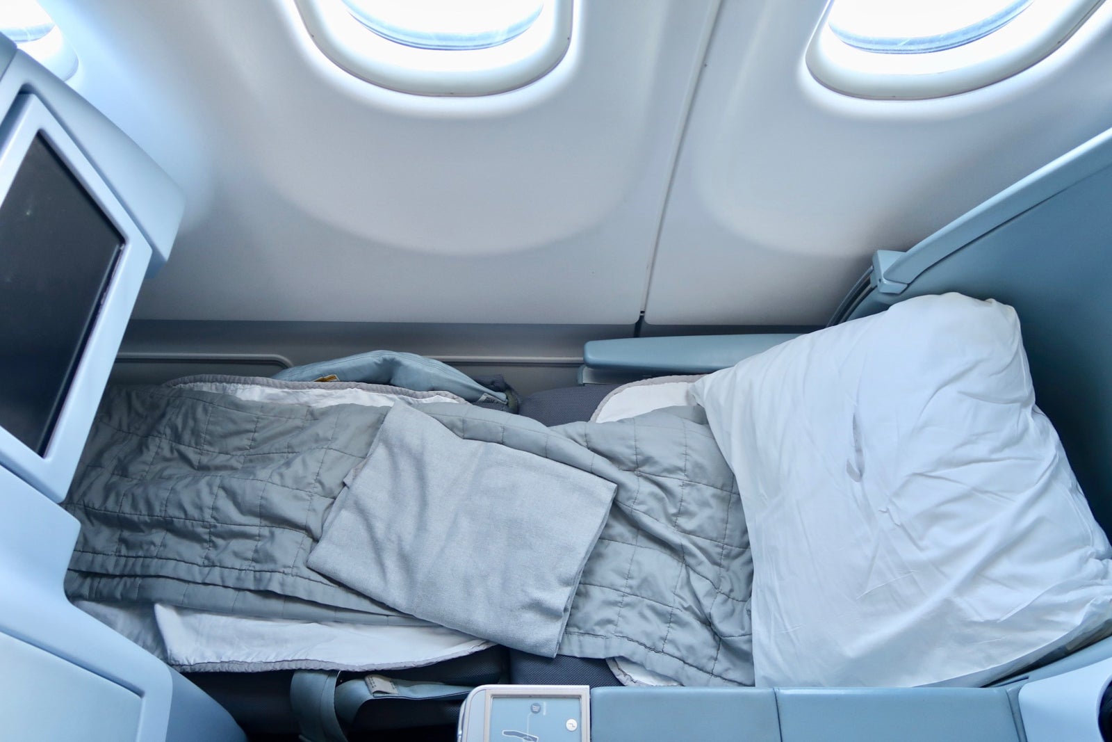 The seat itself was comfortable. Various controls allowed positions from eating to lounging to fully flat. The armrest by the window went down to give me more space in bed mode.