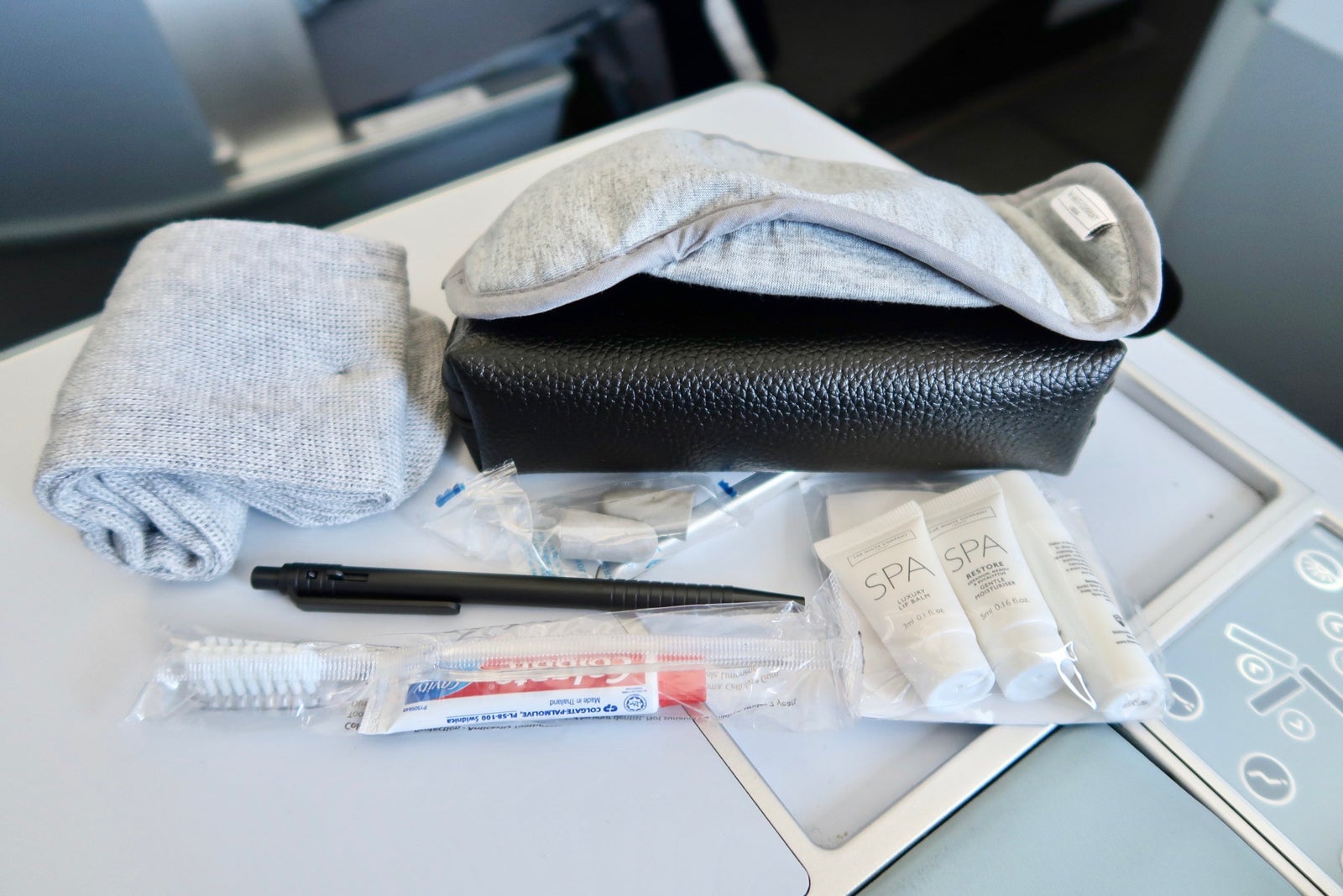 The White Company amenity kit had all the essentials: a good-sized and comfortable eye mask, socks, earplugs, a toothbrush and toothpaste, a pen, and White Company moisturizer, lip balm and a relaxation pulse point.