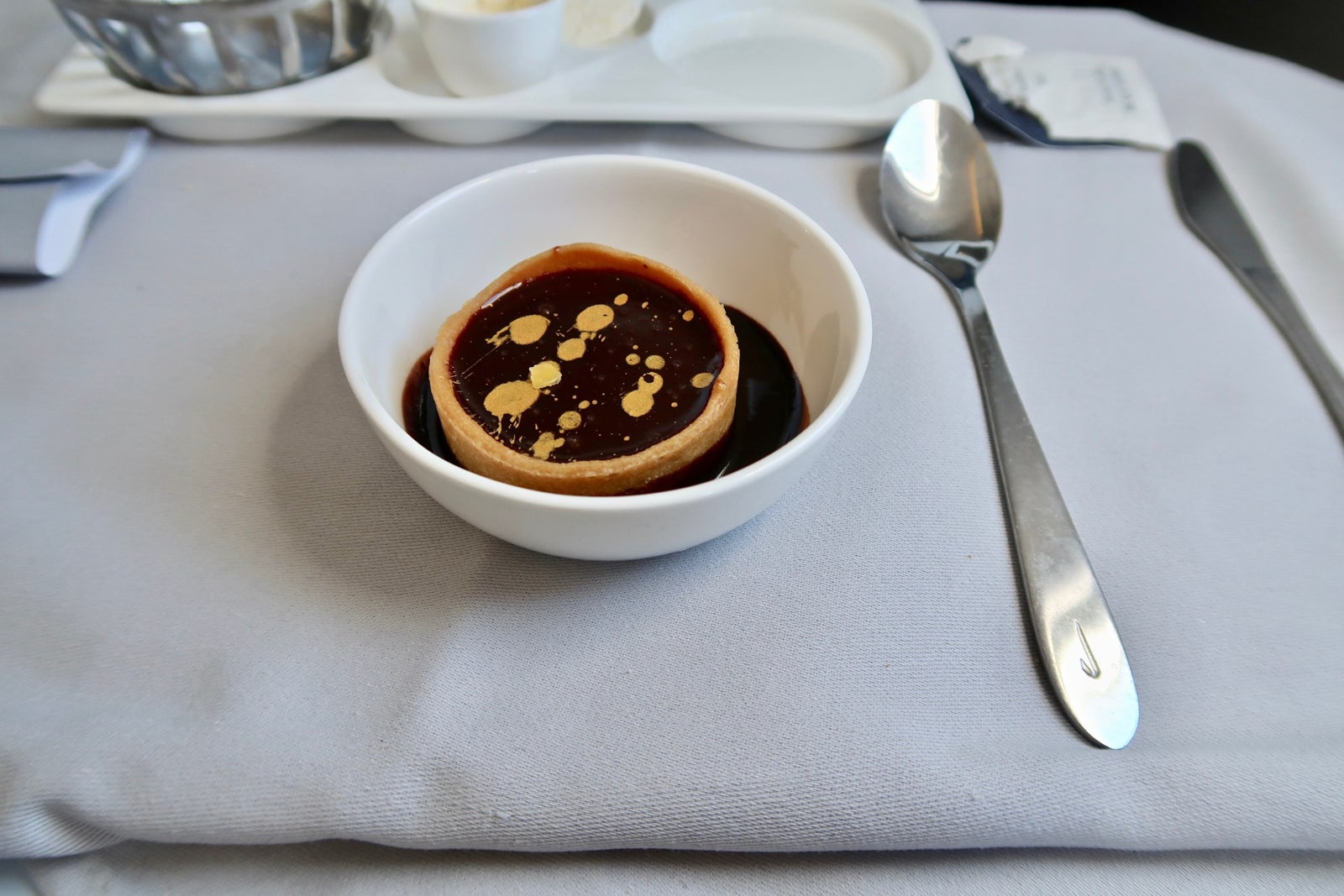 For dessert, I had the baked chocolate tart, which was small but tasty. The flight attendants offered to give me the lemon-and-lime slice and dulce de leche flan, too, but I stuck with just the chocolate dessert and coffee.