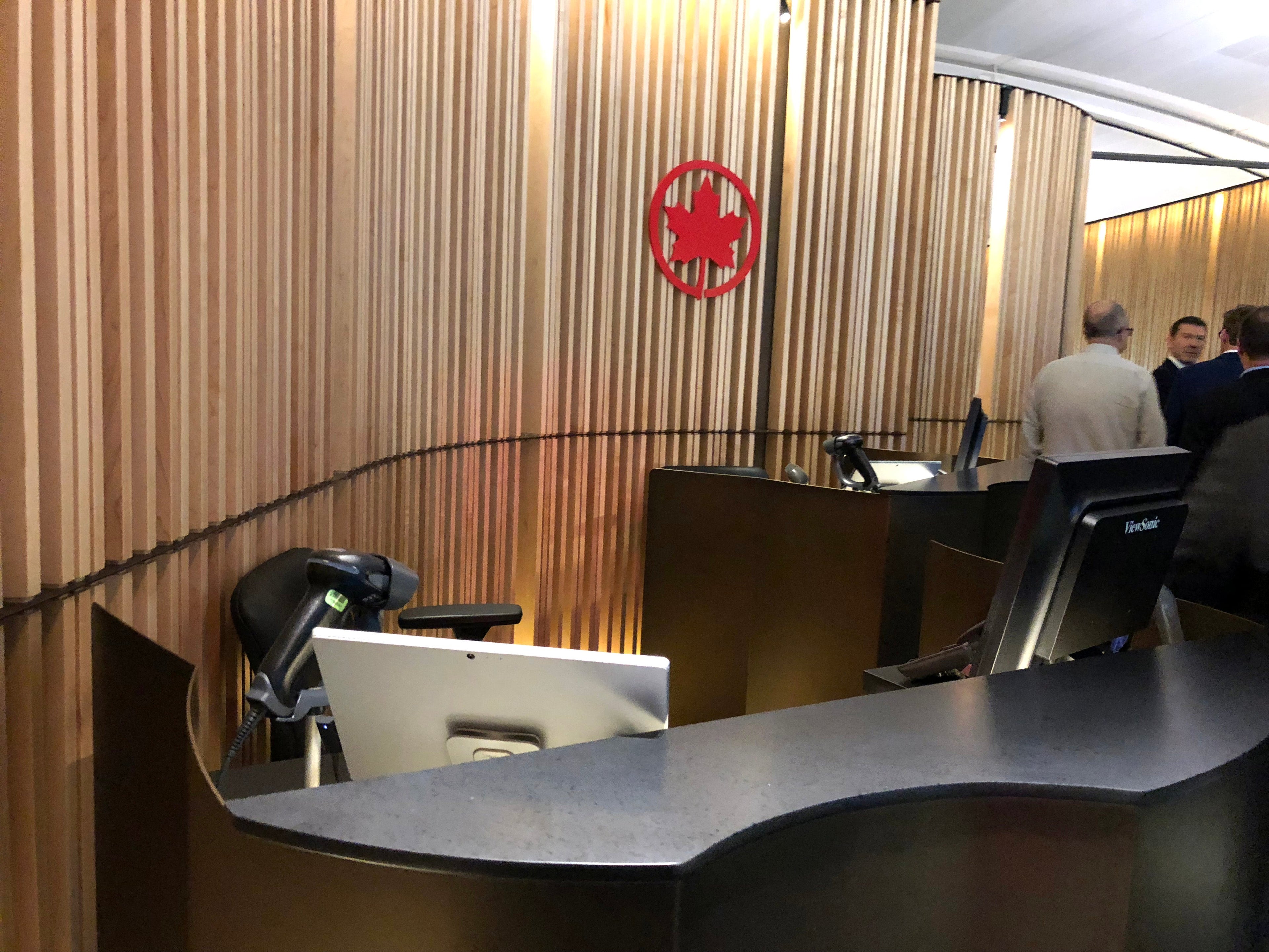 Once you find your way, travelers are greeted by maple wood and the classic Air Canada maple leaf.