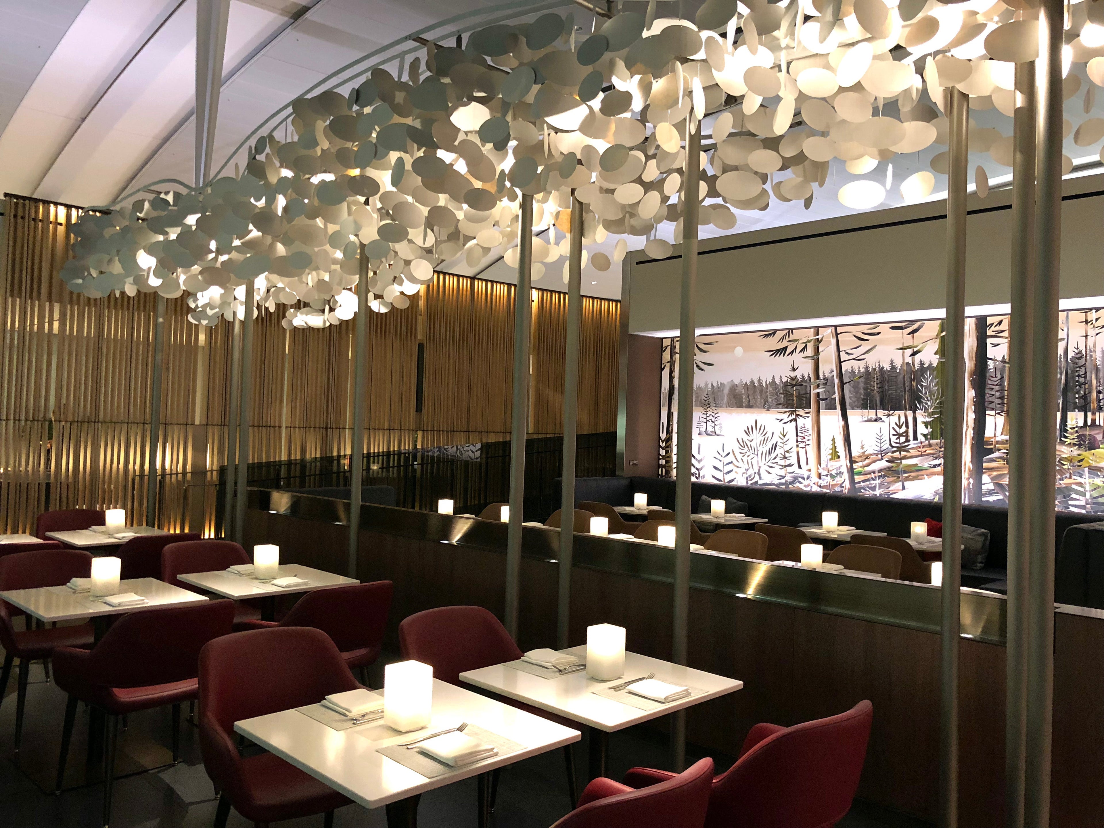 Overall, the feel and decor of the lounge was warm and comfortable. With dim lighting, high ceilings and light warm color tones, the Signature Suite feels welcoming, which is exactly what you want before a long-haul flight. In addition, the decor is very local — many of the furnishings are Canadian made. The highlight of the decor is a large mural on the side of the lounge in the dining area. In the center of the wooded area stands a long maple leaf tree, which, according to airline representatives on premises, represents the smaller carrier growing among the larger, more established carriers.