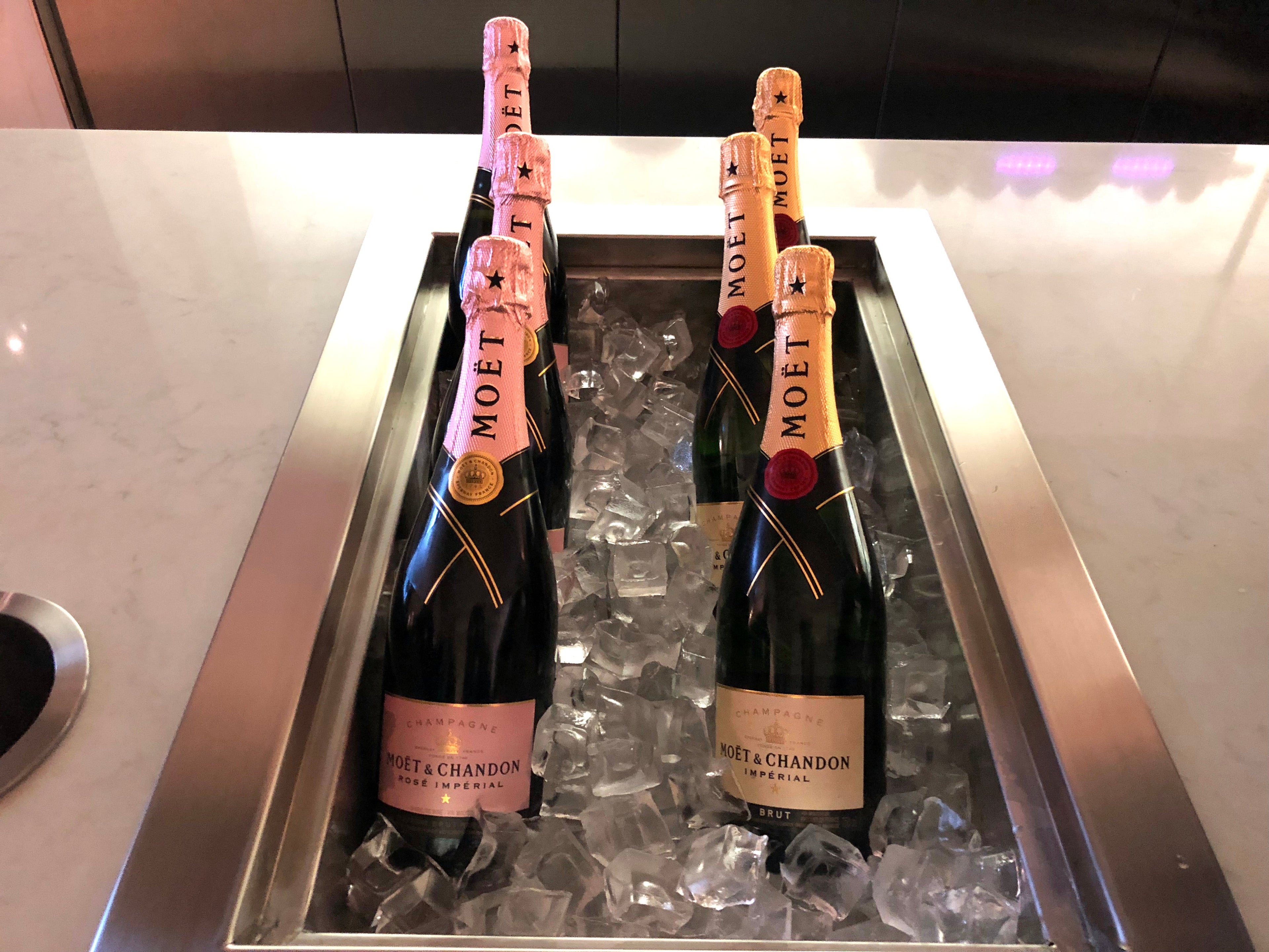 Premium dining options don't stop with the food. In the lounge, you'll also find a wide selection of drink options. Aside from a full bar, there's a bin full of Moët — with both Imperial Brut and Rosé available.