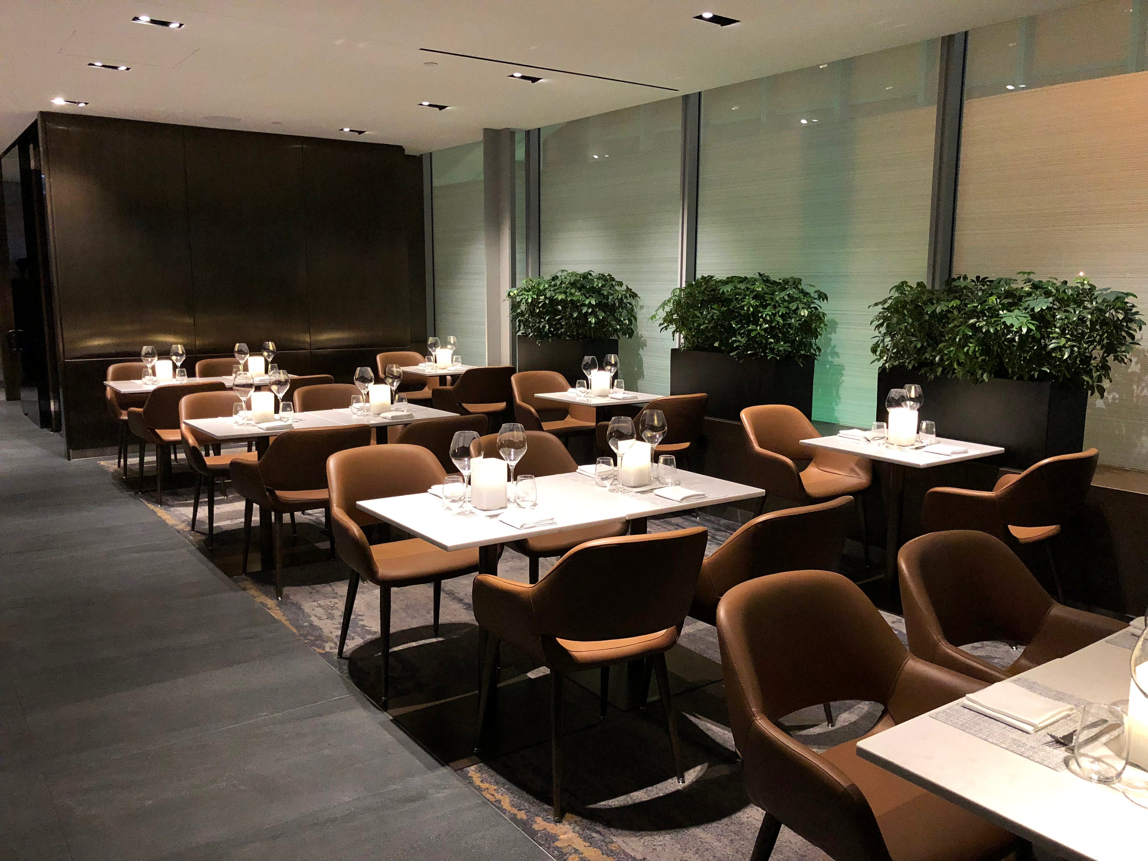 During the lounge's peak hours between 5:00pm-9:00pm, Air Canada expects around 90 people to visit. With a capacity of 150 people, there should be plenty of seating. Because the access restrictions are so tight and limited only to paying business-class passengers, Air Canada expects many of its passengers to be traveling solo. As such, inside the lounge are plenty of two-top dining tables.