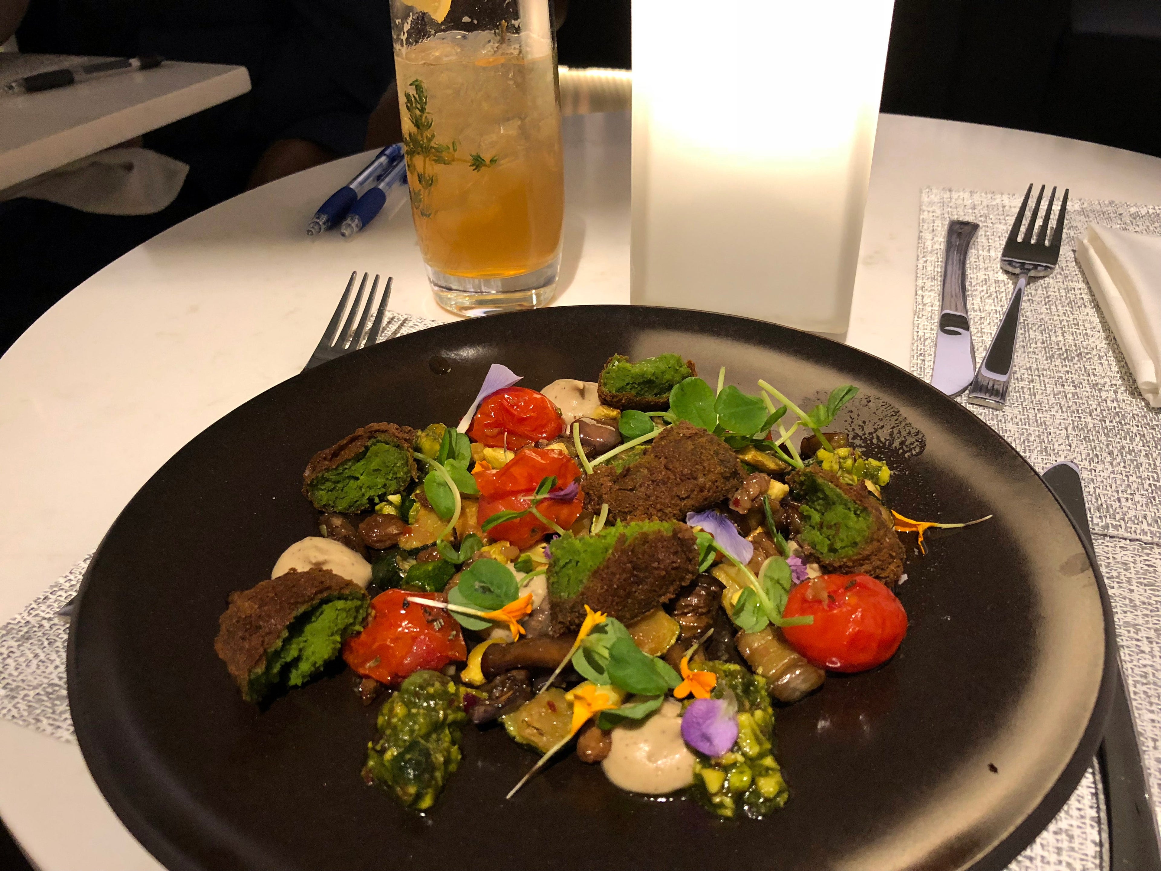 For my main course, I wanted to try something a little different, so I opted for the English pea falafel, which was served with roasted zucchini, cherry tomato and pistachio salsa verde. The meal was excellent with so much flavor in each bite. The vegetables were incredibly fresh and the salsa verde paired extremely well with the falafel.