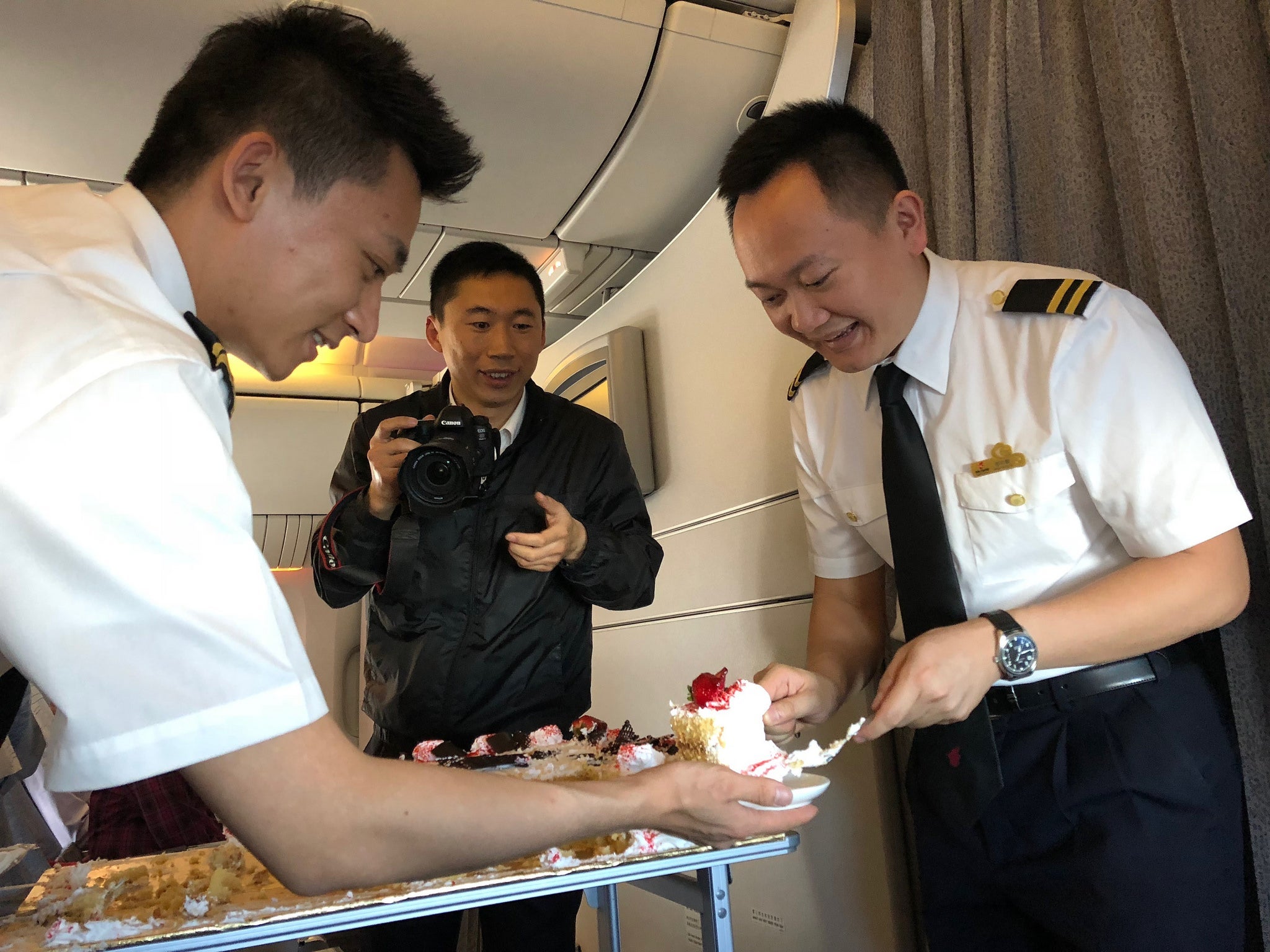 The official photographer proceeded to document the entire process, offering guidance on how to best present my cake for plating attractiveness. "A strawberry for you," the purser said with the gravity of a king, bowing a little bit as he formally presented me my dessert with both hands as a show of courtesy. This was all very enchanting.