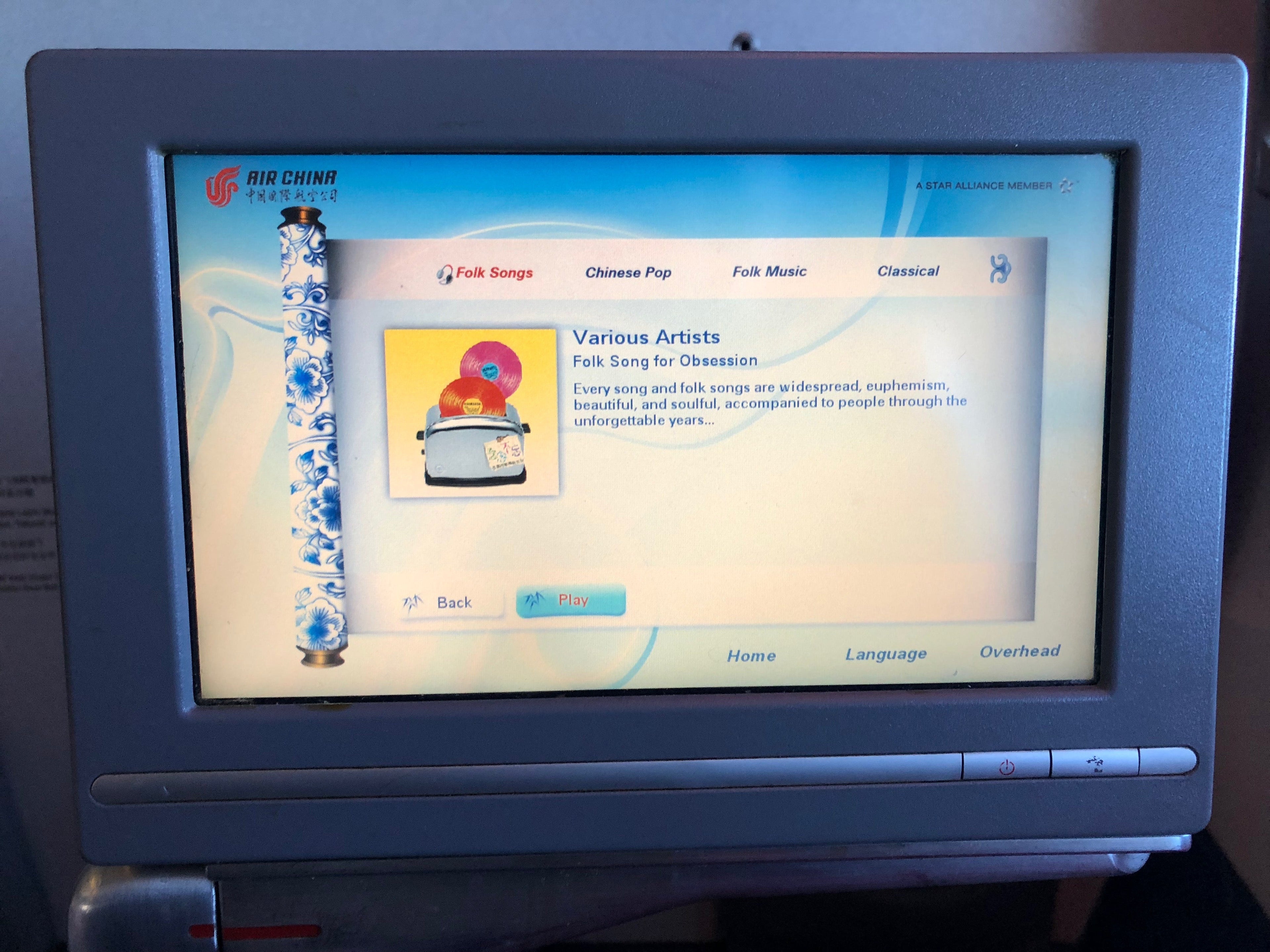 Just like in business class, the entertainment options skewed heavy on the Chinese side. I found the music offerings particularly intriguing, as my options were folk songs, Chinese pop, folk music and classical. The descriptions were flowery, directly translated from the original Mandarin and not at all edited for the prosaic English language.
