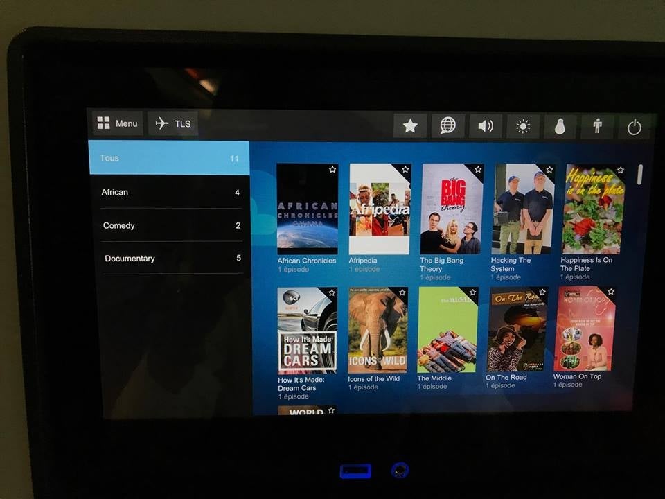 In addition to the movies, there were 11 TV shows onboard, including The Big Bang Theory and African Chronicles.