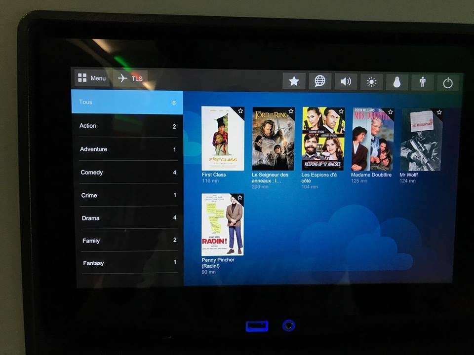 There were six movies loaded into the IFE system, including First Class, Lord of the Rings and Mrs. Doubtfire, among others.