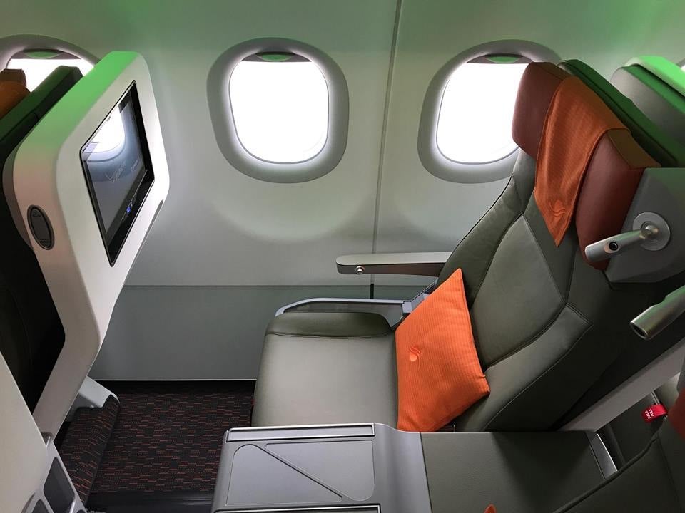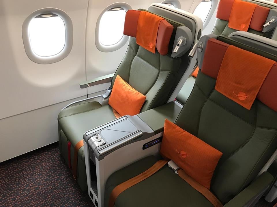 Air Côte d'Ivoire's first A320 delivery from Airbus is significant, too, because it's the launch customer for Stelia Aerospace's brand new Celeste business-class seats. There are four rows of them arranged in a 2-2 configuration.
