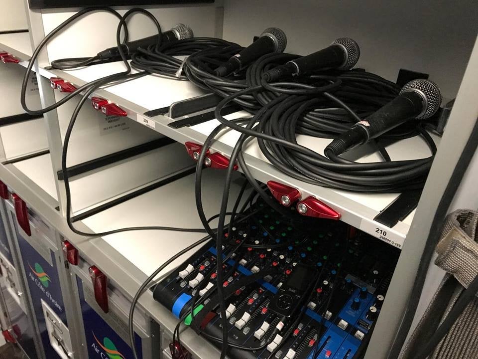 Here's how I knew this flight to Abidjan wouldn't be a normal one: a full microphone and speaker system had been installed so the party could continue.