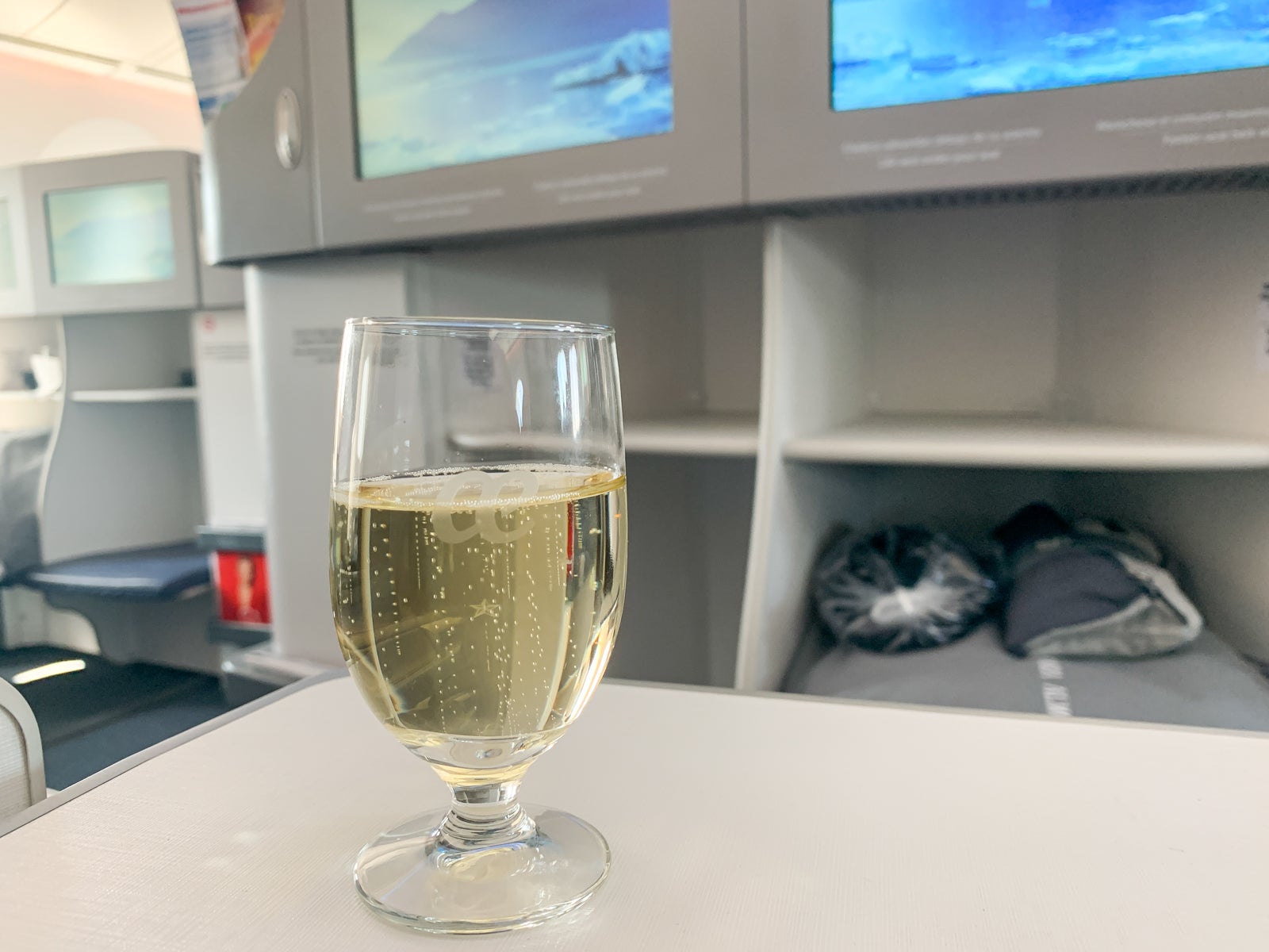 [flight_stats ticket-class="first" review-stat-section="Food and Beverage" tpg-rating="23" tpg-rating-max="25" live-tv="0" tailcam="0" headphones="0" meals="2" champagne="Ramón Raventós Dissident Brut Cava" dine-on-demand="No" comp-alcohol="0" extra-pillows="0" turndown-service="0" /]