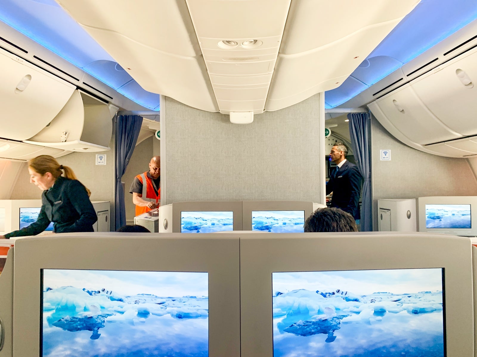 [tpg_rating tpg-rating-score="77" ground-experience="6" cabin-seat="18" amens-ife="8" food-bev="23" service="22" pros="Friendly and relaxed service, great food and competitive amenities." cons="Middling hard product on this aircraft, and the cabin was kept far too warm." /]