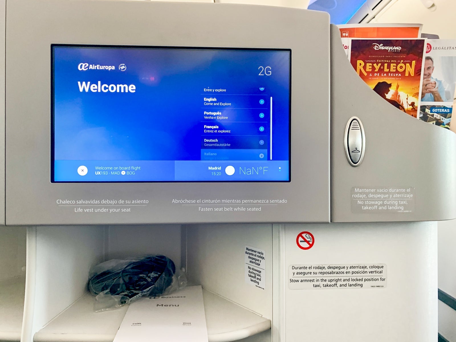 We experienced quite a bit of turbulence on our climb out of Madrid, so the start of the meal service was delayed, but it was no bother, since we had plenty of flying ahead of us and it was a daytime flight.