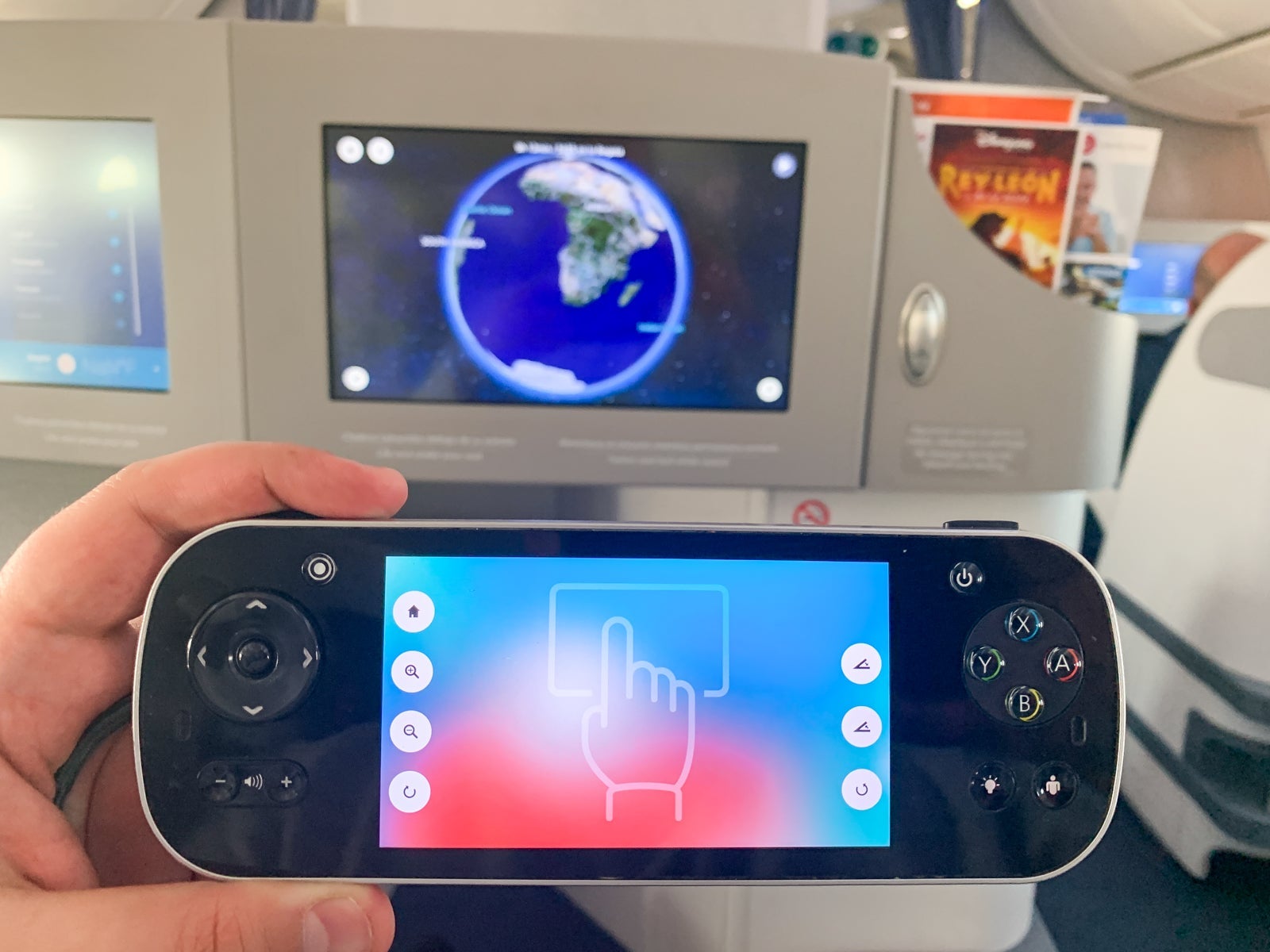 The seat felt quite far from the screen, so even though it was a touchscreen, I preferred to control it with the provided remote, which also had a small touchscreen built in to help control the system.