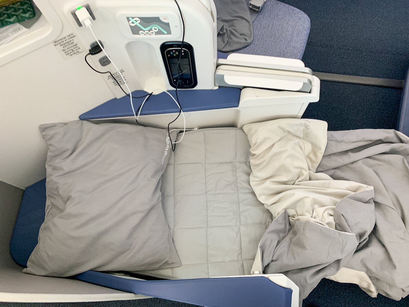Each of the 22 seats was about 20.5 inches wide and when fully flat offered a bed of 78 inches (6 feet, 6 inches). There was a mattress pad, too, which frankly shocked me (in the best way possible). I was able to get comfortable with no issue, but after a while I got really warm with both the mattress pad and the duvet -- there were no individual air vents.