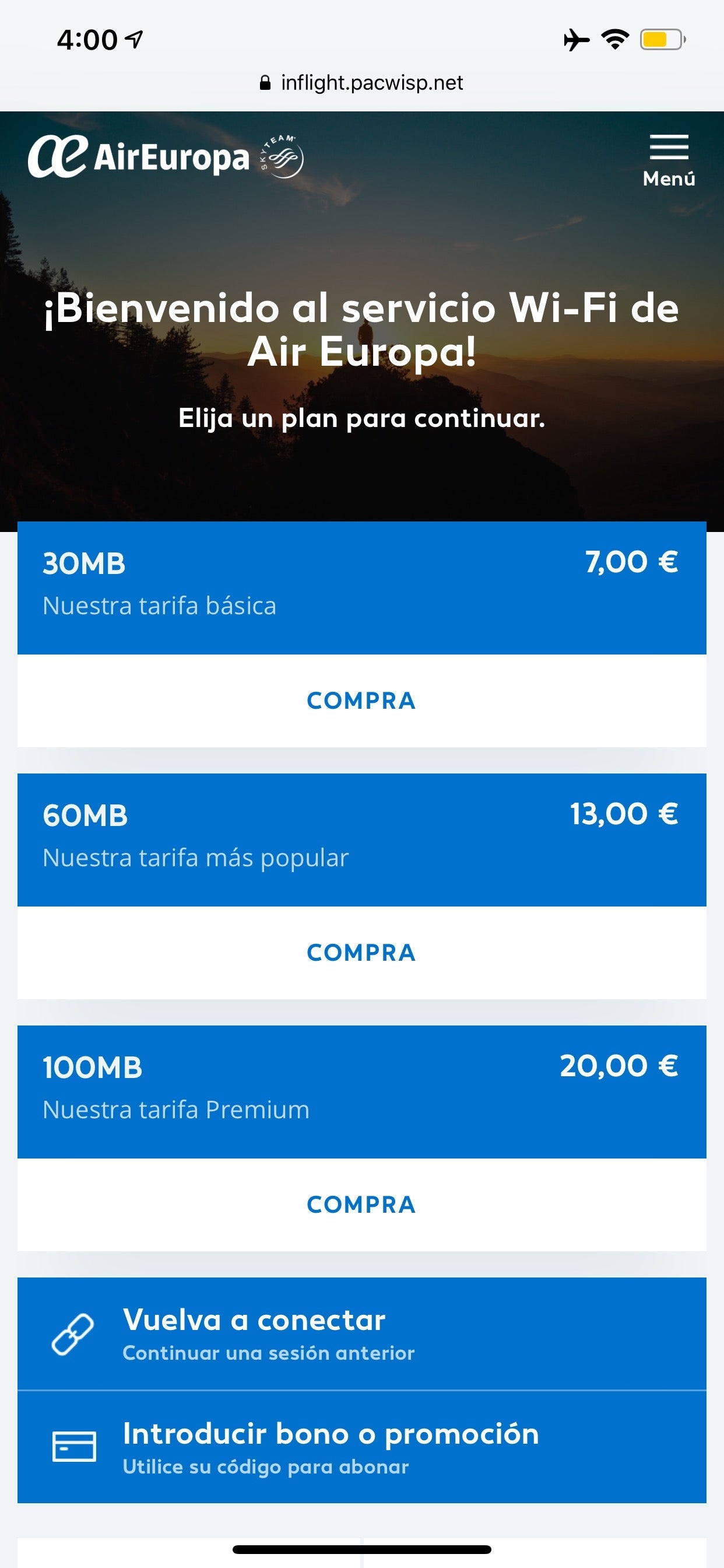 The Wi-Fi situation was a little less pleasant. It worked -- and quite well at that -- but it was ridiculously priced. It cost 22 euros (about $25) for a 100 MB plan. I wanted to be able to stay in touch with the ground, as I was flying for most of the US work day, but I ran through 100 MB in a matter of minutes. So I ended up buying two more packages -- spending almost $70 in the process -- in order to just stay kinda, sorta connected intermittently.