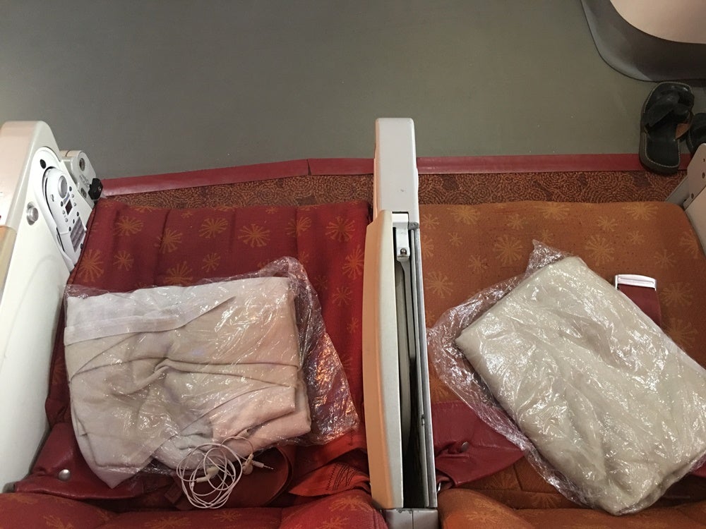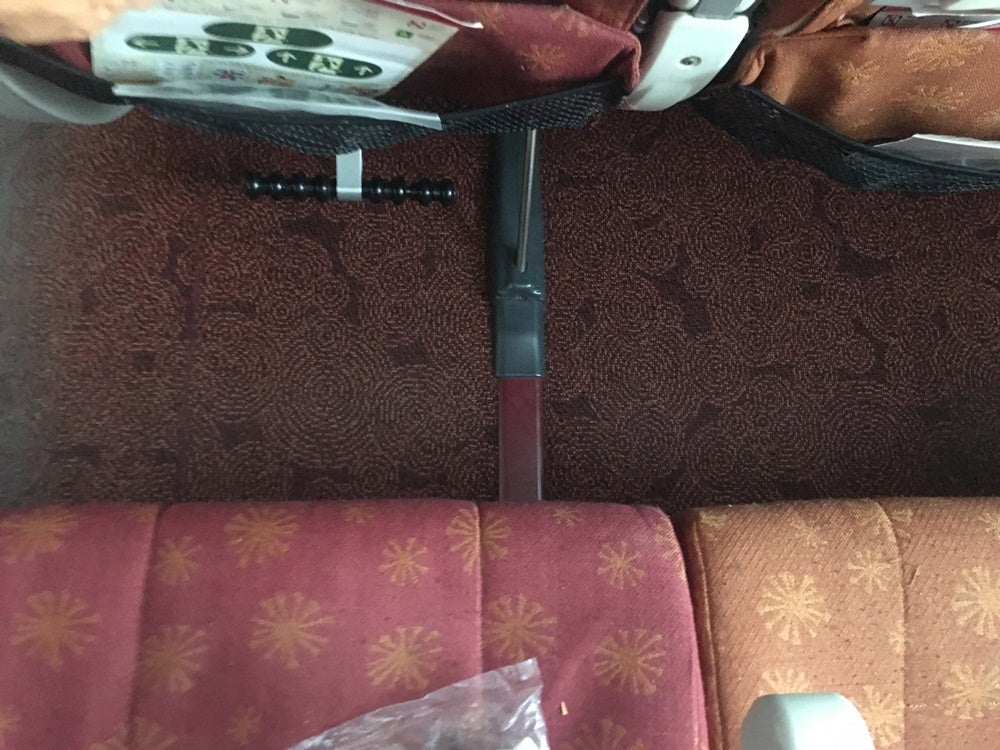 But like an Impressionist painting, the seats, which looked slim and newer from afar, revealed unexpected textures and details upon closer inspection, in this case drab fabric and worn cushions. The carpet looked as if it had been repeatedly run over by trucks, and the in-flight entertainment was dated.