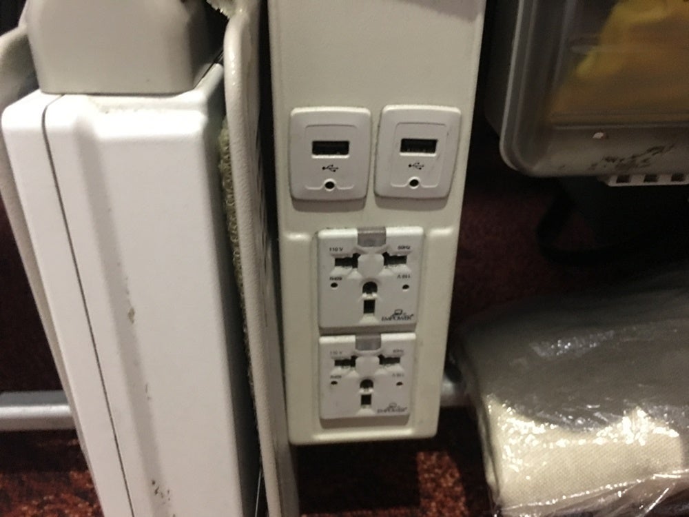 Luckily, there were both USB ports and electrical outlets below the seat, so I was able to keep my phone juiced up during the flight.