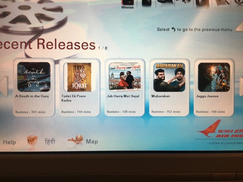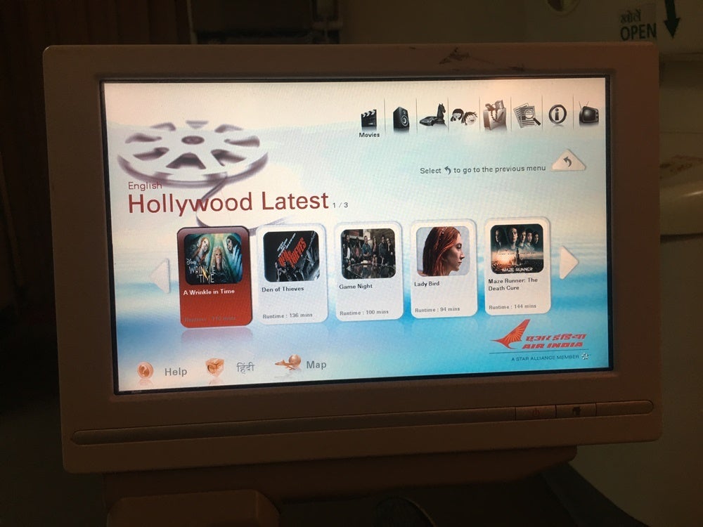 I did take a moment to scroll through the entertainment first, though, and there were 42 older movies (like "La La Land," "Erin Brockovich" and "Blue Jasmine") as well as several new and classic Hindi films (did you know there's a Bollywood version of "When Harry Met Sally"?). There weren't any TV shows available, though.