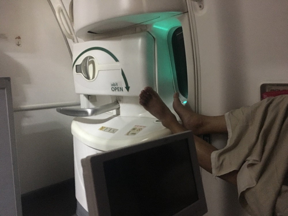 There's constant debate about whether or not people should wear shoes on board, but I think we can all agree that someone's nasty bare feet propped up on an aircraft door is appalling. I felt uncomfortable photographing his face (though I almost felt like he deserved to be passenger-shamed on social media), but I did snap his feet and pits for all TPG readers to see. It wasn't even on purpose — I couldn't get a decent photo of my row without some of his flesh showing.