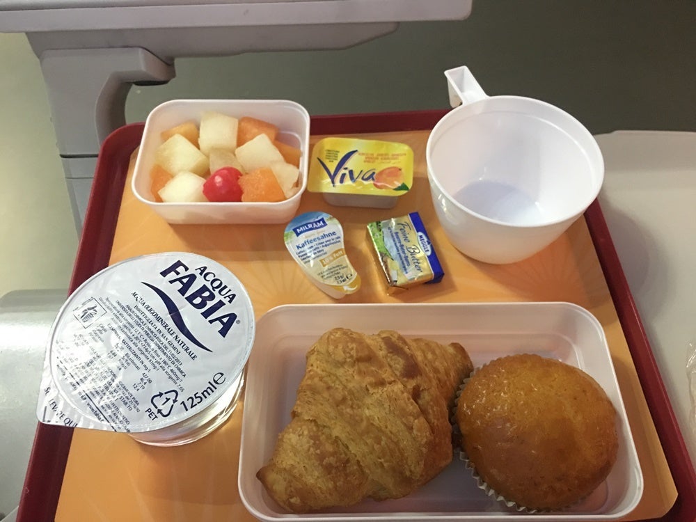 Breakfast consisted of a dried-out croissant and stale muffin plus sugary fruits. In general, the food was disgusting. Air India's economy meal service wasn't just average airline food, it was actually inedible.