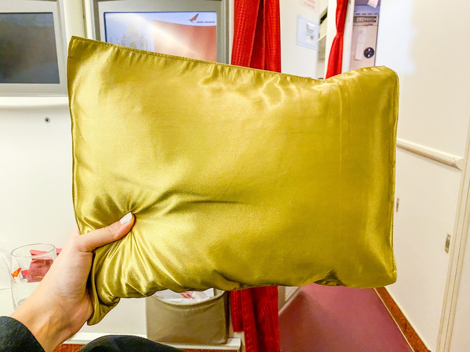 The silk-covered pillow was decently sized, although not very supportive or comfortable. Maybe not pure silk, but it was definitely silky.