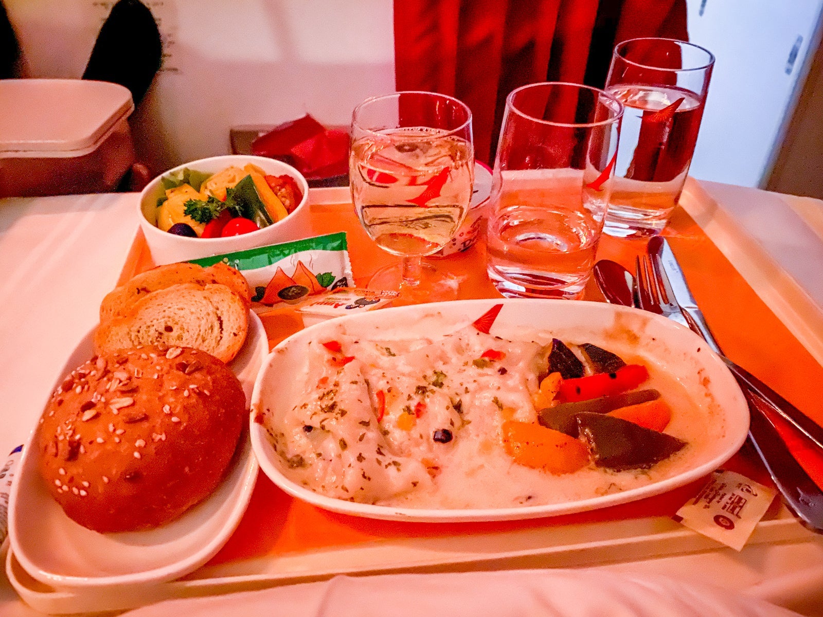 Unlike virtually every other long-haul business class, the entire meal was served at once. Hey, at least they're efficient.