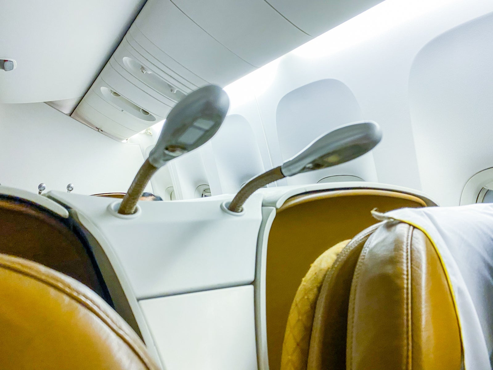 There are overhead adjustable lights for reading.