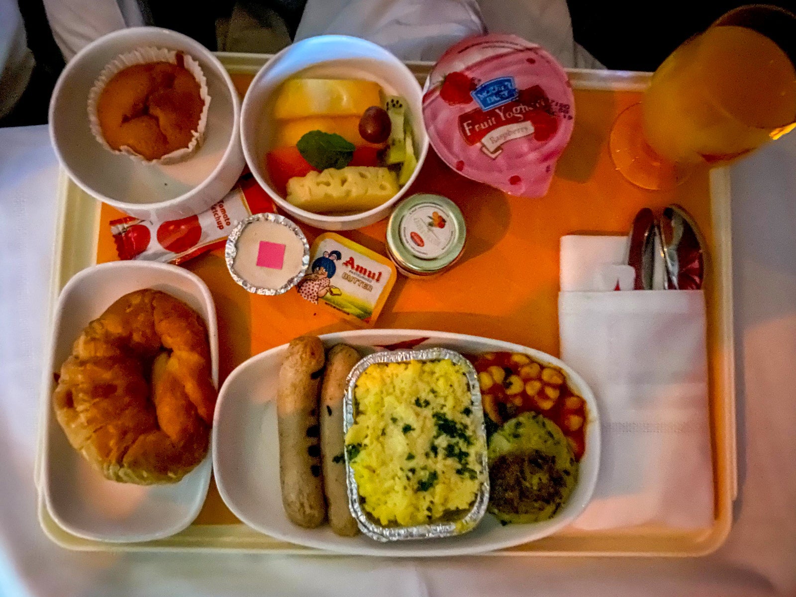 I ordered a veggie scramble. There was no menu to be found and the flight attendants didn't go into detail about what each option included. The other choice was more of a traditional Indian breakfast.