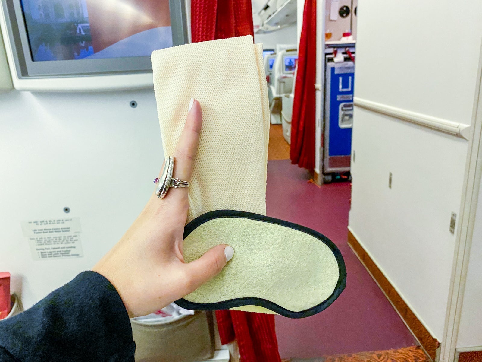 In addition to the eye mask, the bag included a pair of socks.