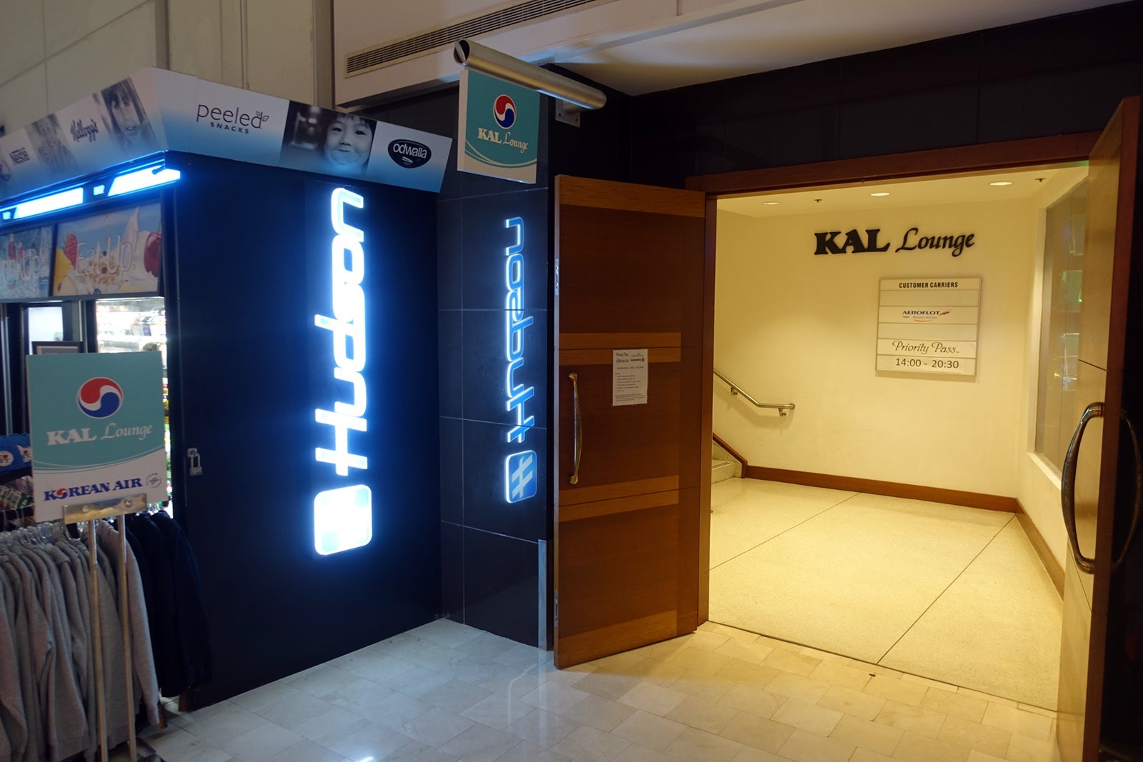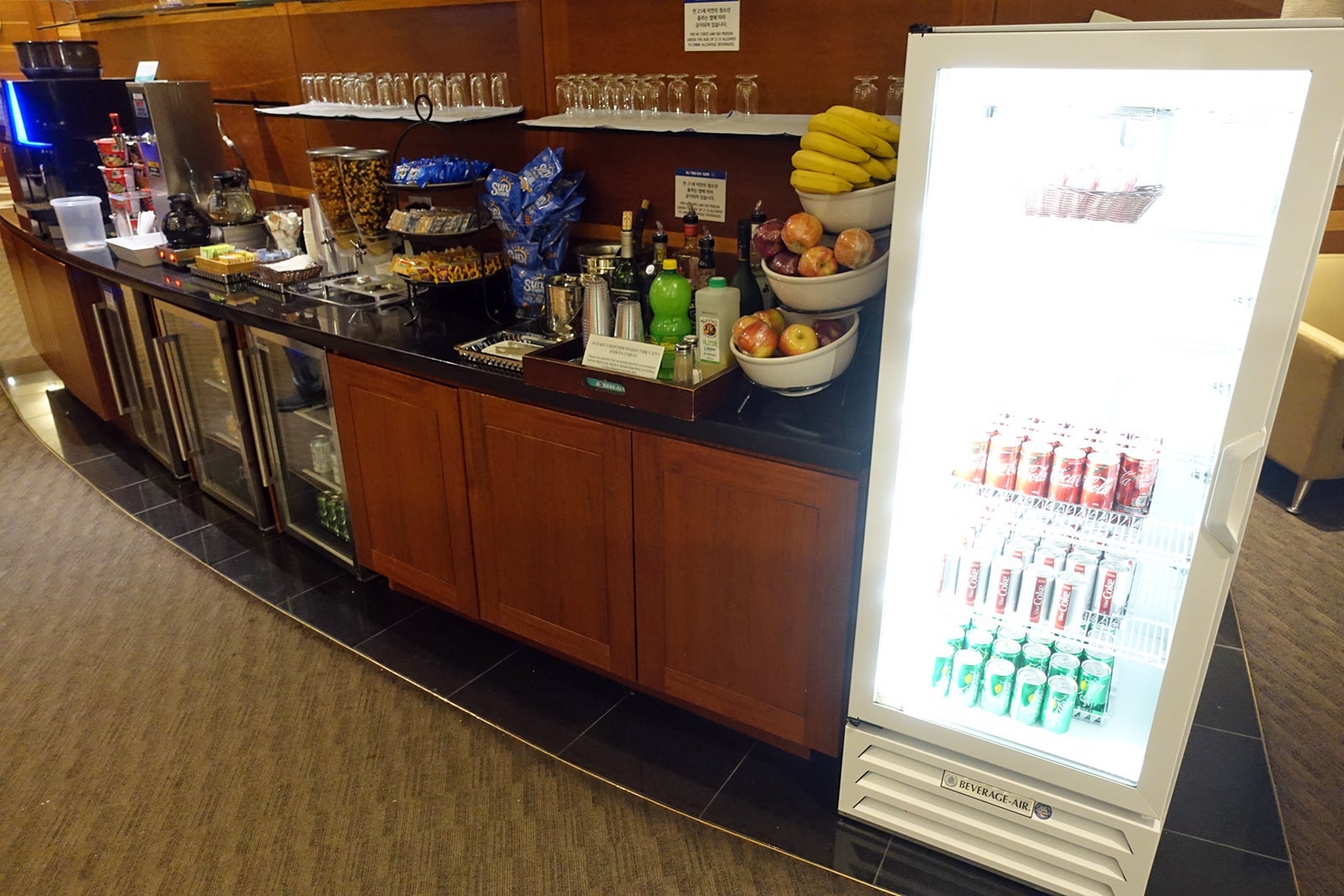 I was in coach, but could still access lounges in the Priority Pass network, thanks to several credit cards including the Chase Sapphire Reserve and Citi Prestige. Priority Pass lounges at T1 include the Air France lounge, which is OK but turns away Priority Pass holders at peak times, and the Korean Air one, which is a very subpar space but was almost empty when I got there. A notice at the entrance alerted Priority Pass users that they were welcome from 2pm to 8:30pm. As usual, the lounge had no food other than instant ramen, fruit and pastries.