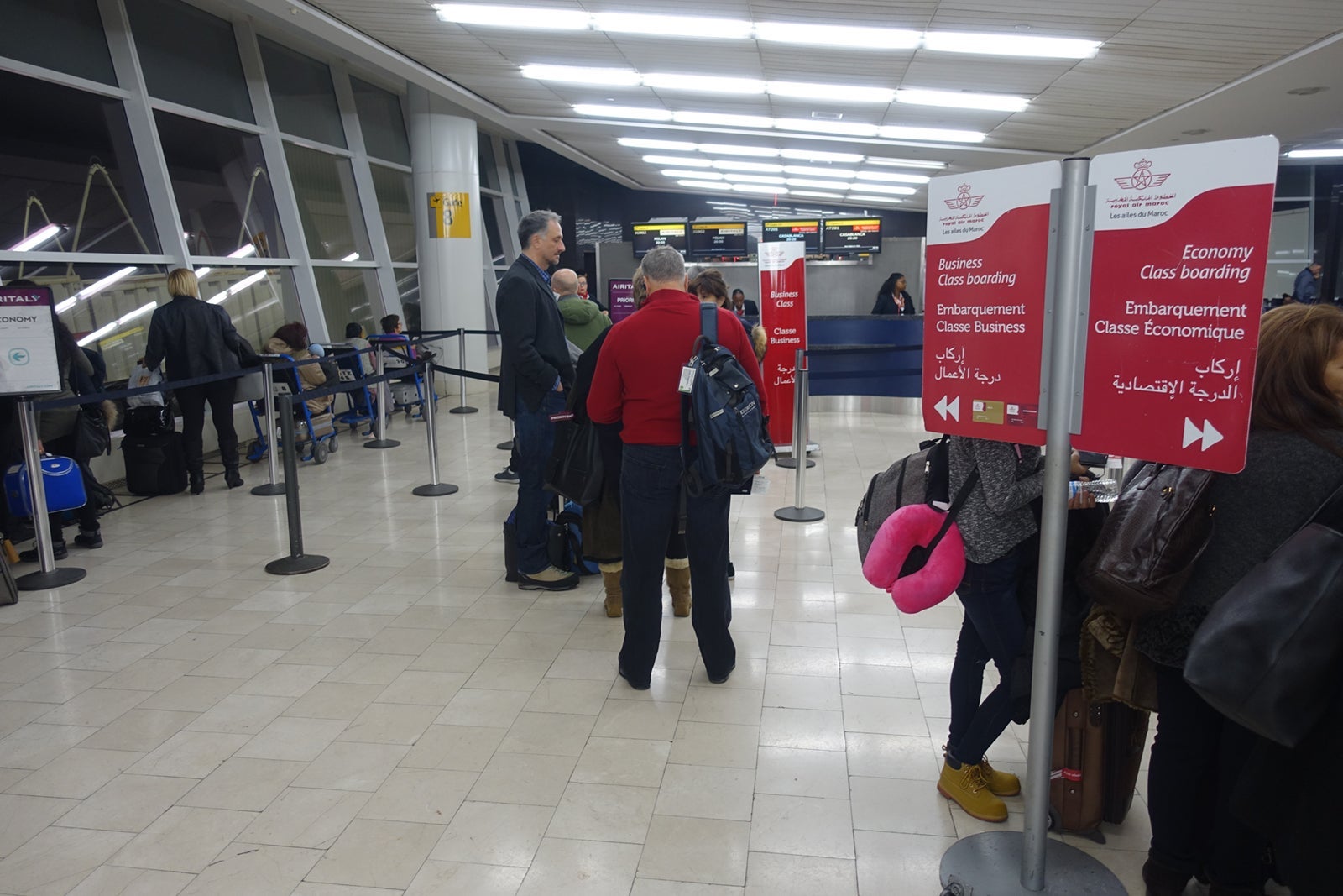 At Gate 8, I found a very short queue for the Air Italy flight, but in a very confusing setting. A Royal Air Maroc flight to Casablanca (CMN) was boarding right next at the same time, and one gate over from that, an Alitalia flight was also boarding. My priority boarding was honored with no problems once I had found the appropriate line, and at 8:05pm I was among the first aboard one of Air Italy's five Airbus A330s.